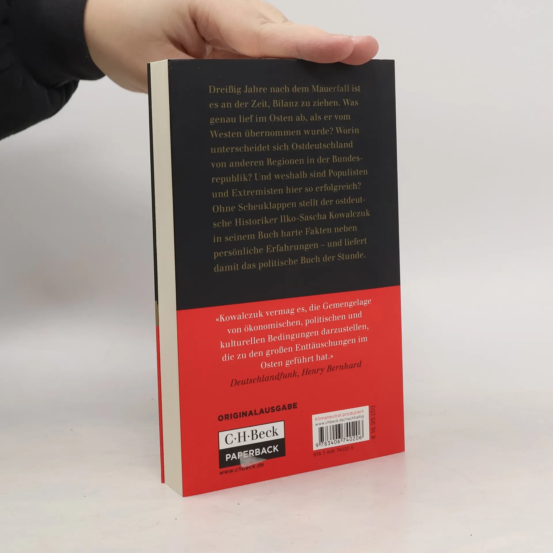 Dreißig Jahre nach dem Mauerfall ist es an der Zeit, Bilanz zu ziehen. Was genau lief im Osten ab, als er vom Westen übernommen wurde? Worin unterscheidet sich Ostdeutschland von anderen Regionen in der Bundesrepublik? Und weshalb sind Populisten und Extremisten hier so erfolgreich? Ohne Scheuklappen stellt der ostdeutsche Historiker Ilko-Sascha Kowalczuk in seinem Buch harte Fakten neben persönliche Erfahrungen - und liefert damit das politische Buch der Stunde. Die Revolution in der DDR kam völlig überraschend. Als die Mauer fiel, hatte niemand damit gerechnet. Die Herstellung der deutschen Einheit erfolgte in einem rasanten Tempo. Fast nichts blieb im Osten so, wie es war. Die Menschen mussten ihren Alltag, ihr Leben von heute auf morgen komplett neu einrichten. Die sozialen Folgen waren enorm und sind im Westen bis heute meist unbekannt. Ilko-Sascha Kowalczuk erklärt in seinem kurzweiligen Essay, wie sich die Umwandlung Ostdeutschlands vollzog, welche Gewinne und Verluste die Menschen dort verbuchten und wie die ostdeutsche Gegenwart mit der Vergangenheit von vor und nach 1989 zusammenhängt. Er entfaltet dabei ein breites politisches, ökonomisches und gesellschaftliches Panorama - mit Ecken und Kanten, voller Überraschungen und Zuspitzungen. Eine kontroverse Debatte zum Jubiläum ist garantiert.