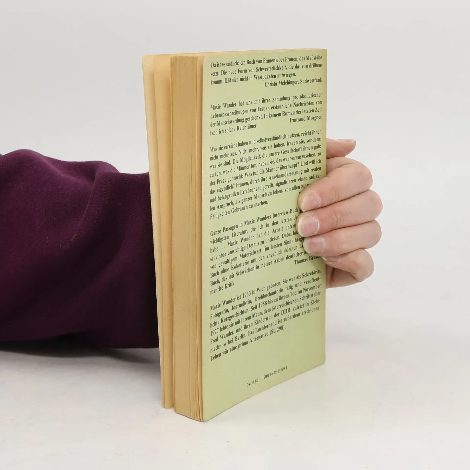 Eine Sammlung von Geschichten von Frauen, nach Unterhaltungen, die die Autorin Maxie Wander mit Tonband aufnahm. Maxie Wander lebte in der DDR und kämpfte dort Zeit ihres Lebens für die Kunstfreiheit.