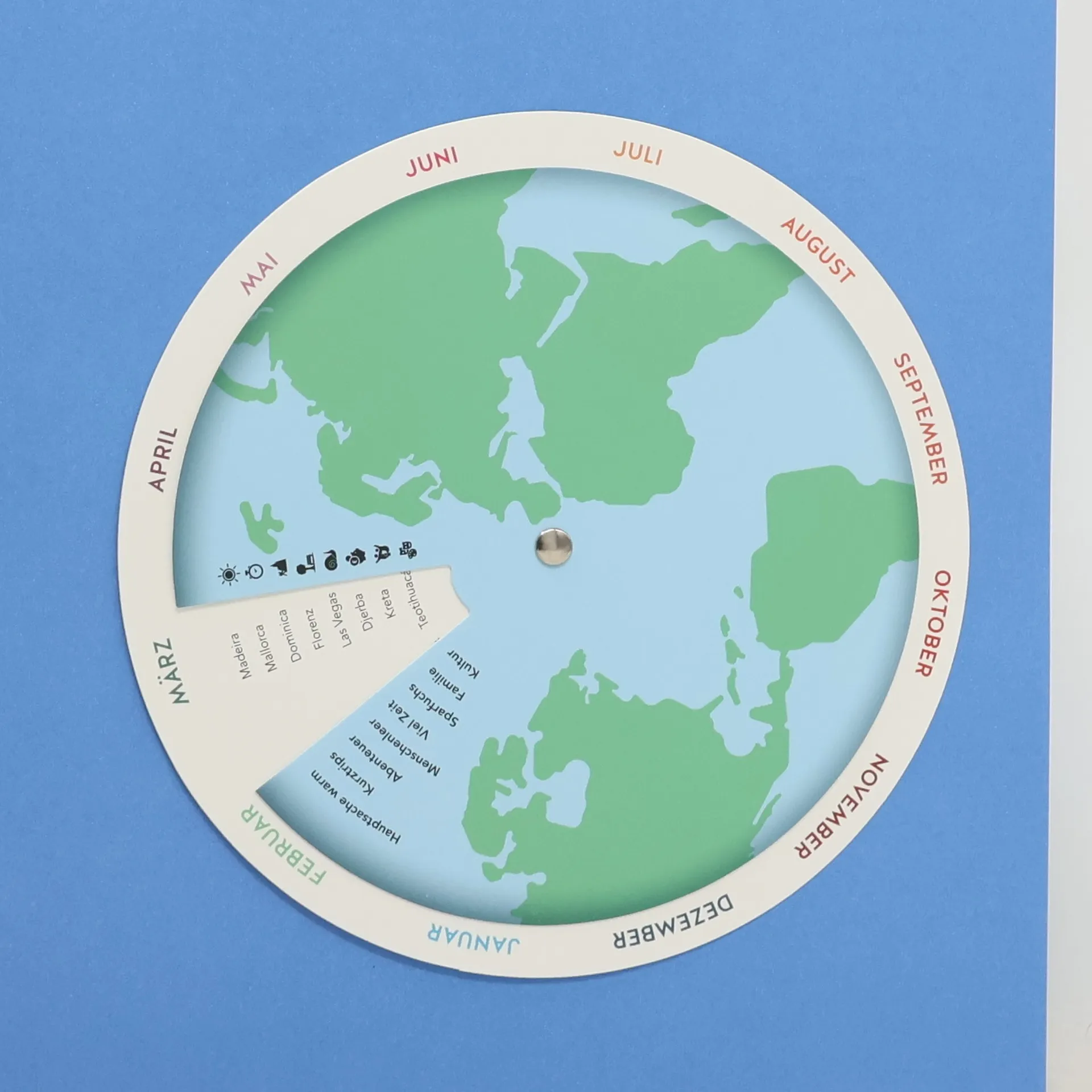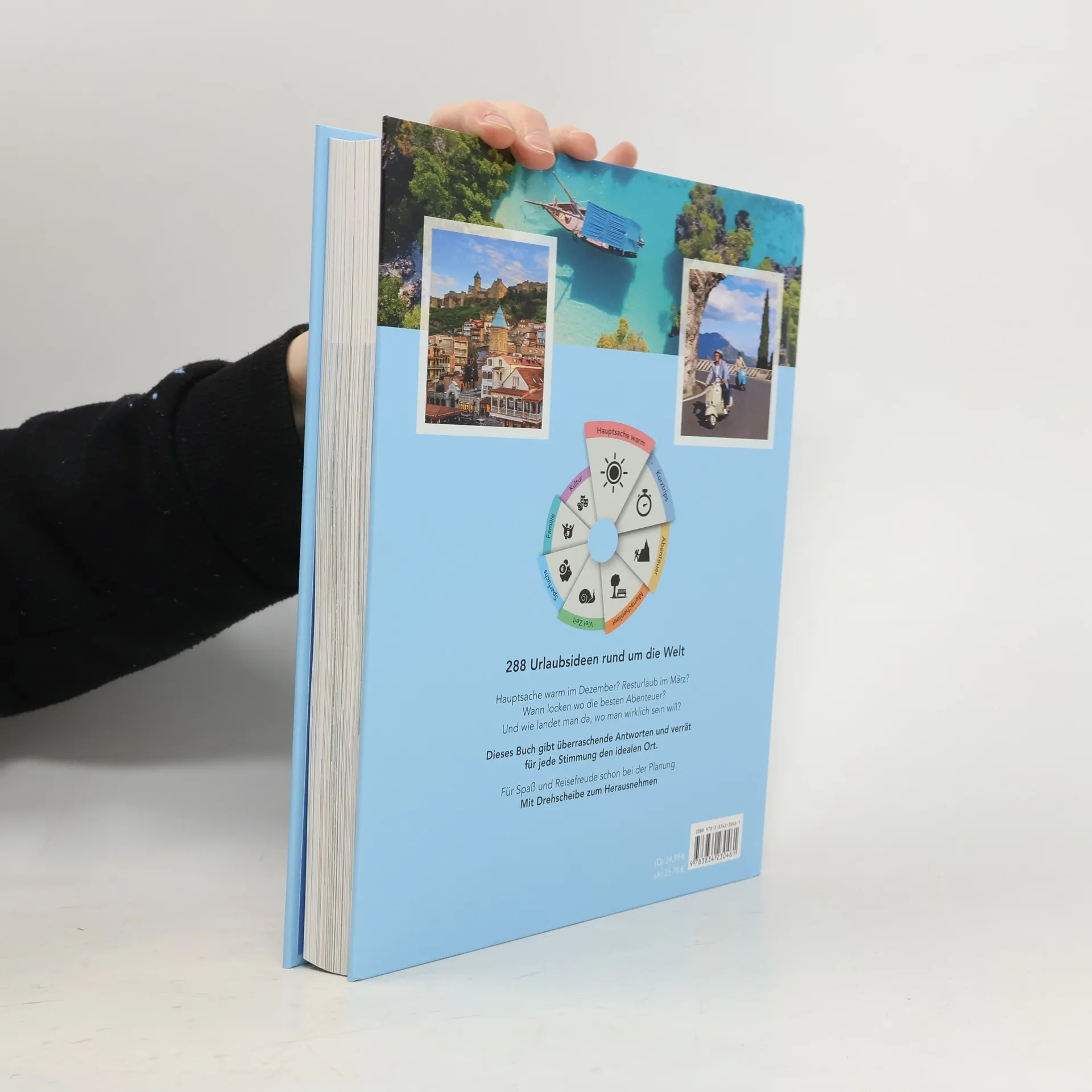 „Wohin fährst du in den Urlaub“? Diese Frage kennt wohl jeder. Und auch wohl jeder stellt sie sich Jahr für Jahr aufs Neue selbst. Wohin, wo man nicht schon gewesen ist, wo es nicht zu voll, zu laut, zu heiß, zu kalt, zu hektisch oder zu langweilig ist. Wo ist es wann ganz besonders? Ganz besonders spannend, ganz besonders entspannend, was kennt man noch nicht? Welches Ziel entspricht wann meinen Bedürfnissen und verspricht einen tollen Urlaub? Ein wunderbares Buch mit Reiseinspirationen für jeden Monat und verrät für jede Stimmung den idealen Ort - eben zur richtigen Zeit am perfekten Ort sein! Mit herausnehmbarer Drehscheibe als Traumziel-Finder. Abenteuertrip mit den Kumpels geplant, Sommerurlaub mit der Familie und noch keine Ahnung wohin? Einfach an der Scheibe drehen und voilá! Da ist die Antwort. Für jeden Reisewunsch, für jeden Monat. Sie navigiert durch den Dschungel der Möglichkeiten und verrät die besten Ziele aus dem Buch. Für Spaß und Reisefreude schon bei der Planung.