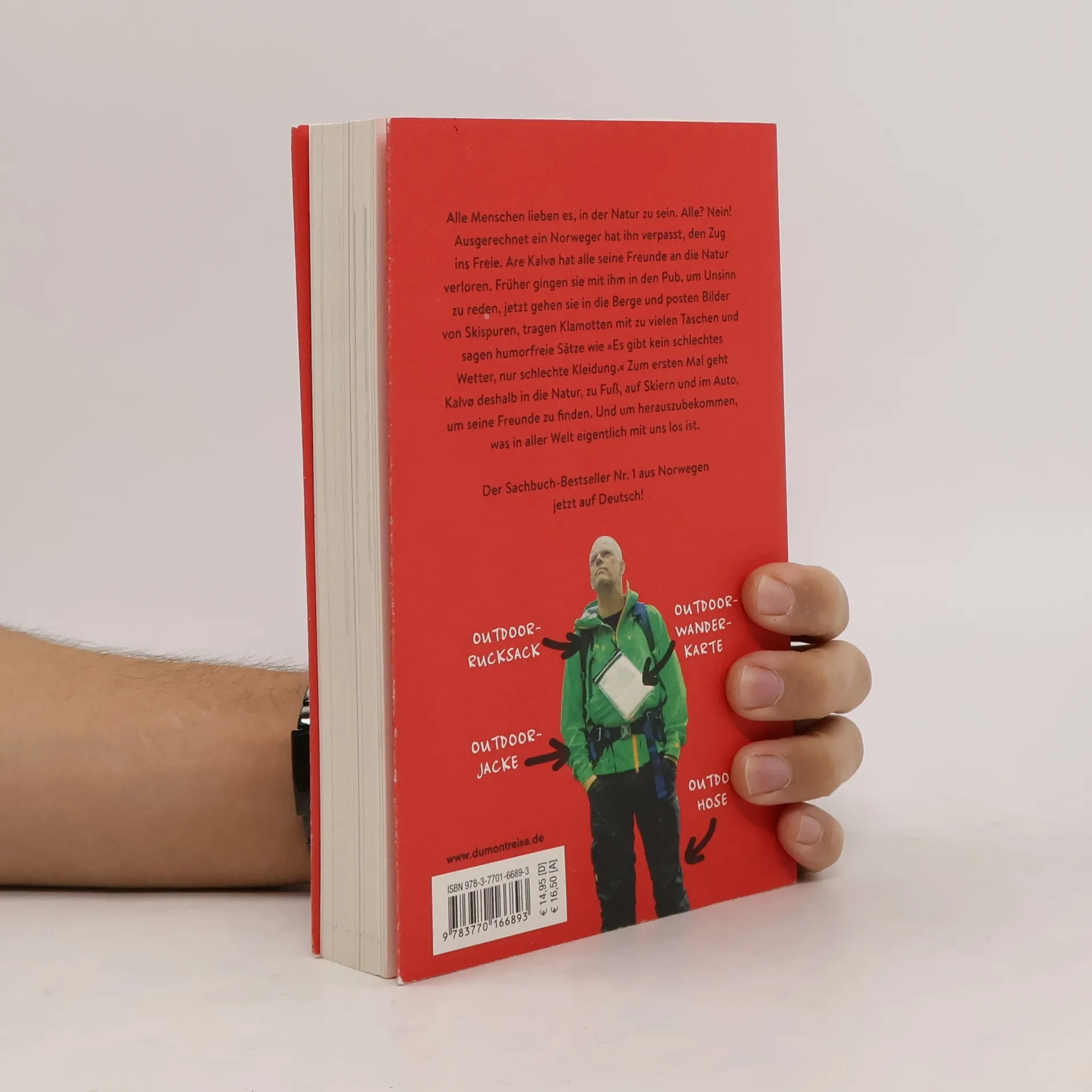 Alle Menschen lieben es, in der Natur zu sein. Alle? ... Nein! Ausgerechnet ein Norweger hat ihn verpasst, den Zug ins Freie. Are Kalvø zog in die Stadt und blickte nie zurück. Doch dann kommt der Tag, an dem er zu seinem Entsetzen feststellt: Er hat alle seine Freunde an die Natur verloren. Früher kamen sie mit ihm in den Pub, um Unsinn zu reden, jetzt gehen sie plötzlich in die Berge und posten Bilder von Skispuren, tragen Klamotten mit zu vielen Taschen und sagen humorfreie Sätze wie „Es gibt kein schlechtes Wetter, nur schlechte Kleidung.“ Zum ersten Mal, seit er auf der Schule zu so etwas gezwungen wurde, geht Kalvø deshalb auf Tour, zu Fuß, auf Skiern und im Auto, um seine Freunde zu finden. Und um herauszufinden, was eigentlich mit uns los ist.