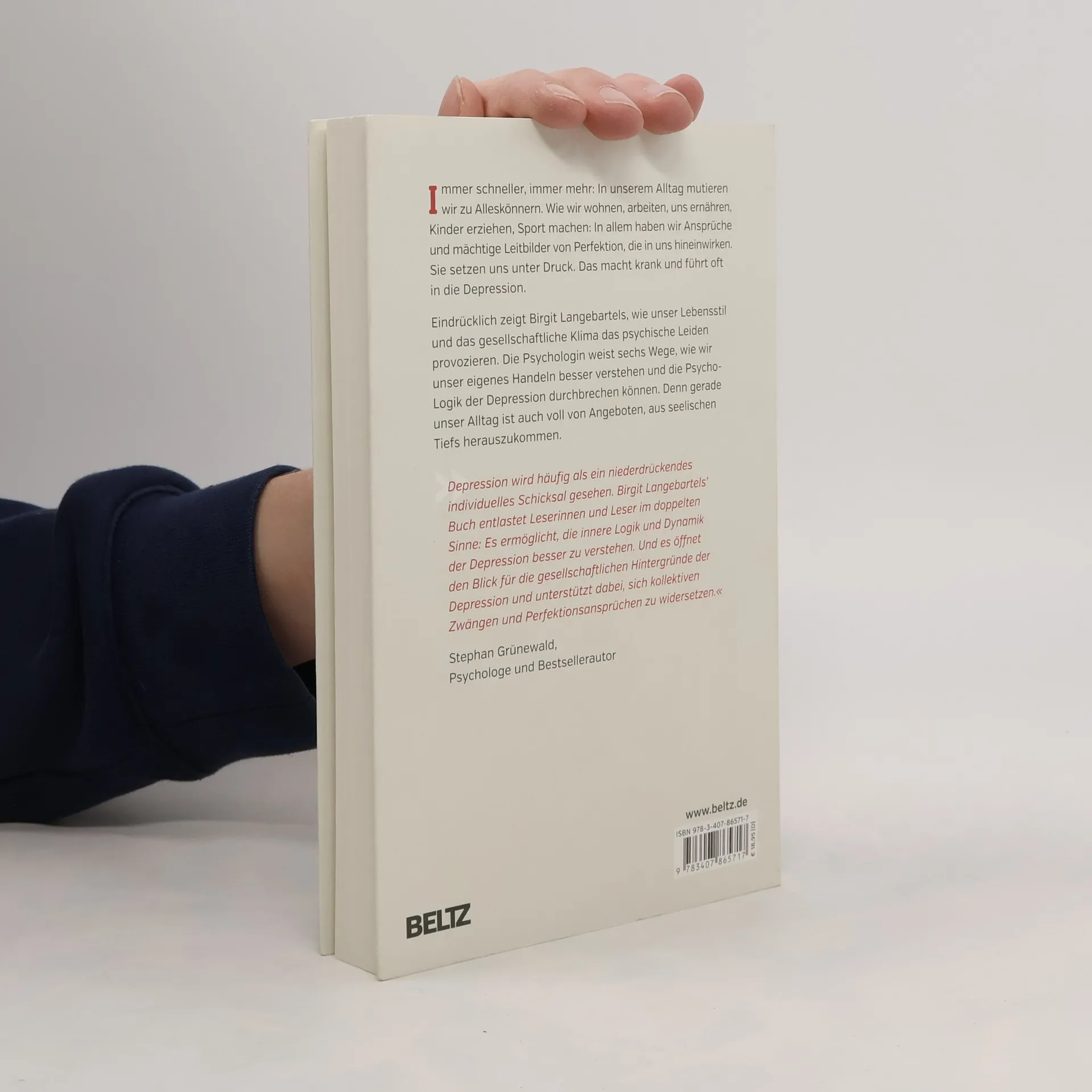 Immer schneller, immer mehr: In unserem Alltag mutieren wir zu Alleskönnern. Wie wir wohnen, arbeiten, uns ernähren, Kinder erziehen, Sport machen: In allem haben wir Ansprüche und mächtige Leitbilder von Perfektion, die in uns hineinwirken. Sie setzen uns unter Druck. Das macht krank und führt oft in die Depression. Eindrücklich zeigt Birgit Langebartels, wie unser Lebensstil und das gesellschaftliche Klima das psychische Leiden provozieren. Die Psychologin weist sechs Wege, wie wir unser eigenes Handeln besser verstehen und die Psycho-Logik der Depression durchbrechen können. Denn gerade unser Alltag ist voll von Angeboten, aus seelischen Tiefs herauszukommen.