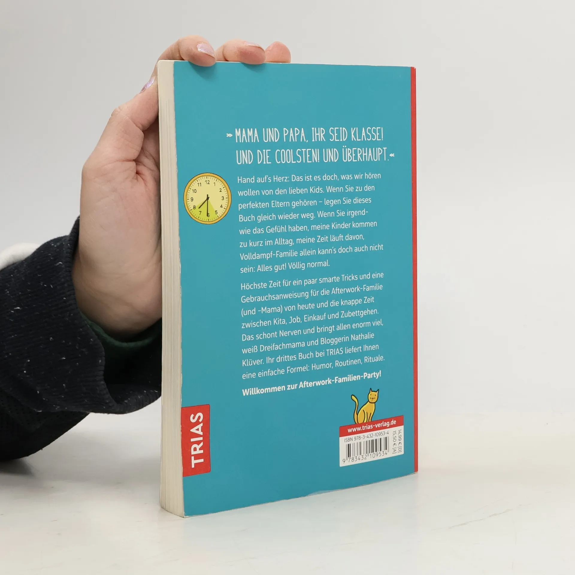 „Mama und Papa, ihr seid klasse! Und die coolsten! Und überhaupt.“ Hand auf Herz: Das ist es doch, was wir hören wollen von den lieben Kids. Wenn Sie zu den perfekten Eltern gehören – legen Sie dies Buch gleich wieder weg. Wenn Sie irgendwie das Gefühl haben, meine Kinder kommen zu kurz im Alltag, meine Zeit läuft davon, Volldampf-Familie allein kann’s doch auch nicht sein: Alles gut! Völlig normal. Höchste Zeit für ein paar smarte Tricks und eine Gebrauchsanweisung für die Afterwork-Familie (und -Mama) von heute und die knappe Zeit zwischen Kita, Job, Einkauf und Zubettgehen. Das schont Nerven und bringt allen enorm viel, weiß Dreifachmama und Bloggerin Nathalie Klüver. Ihr drittes Buch bei TRIAS liefert Ihnen eine einfache Formel: Humor, Routinen, Rituale. Willkommen zur Afterwork-Familien-Party!