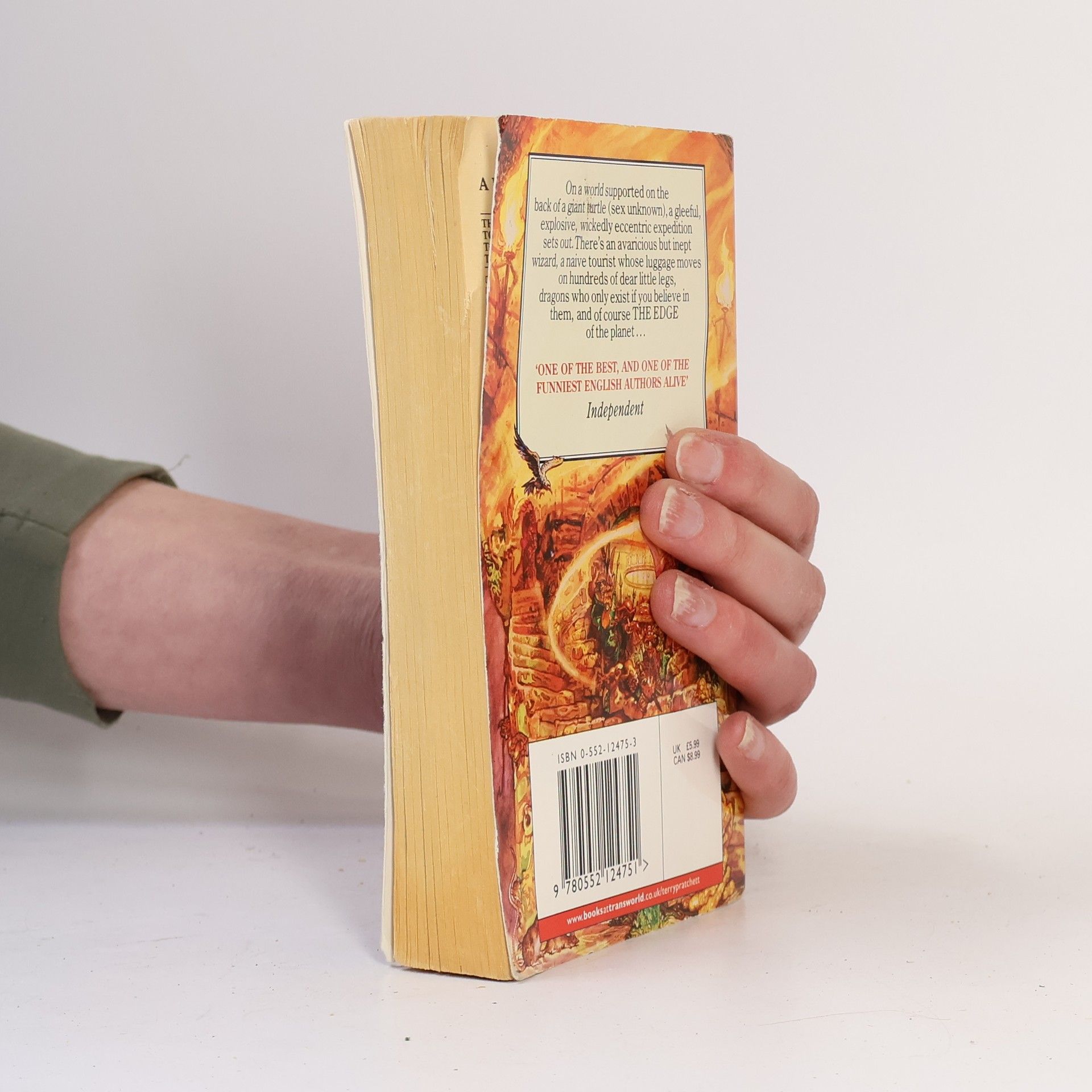 On a world supported on the back of a giant turtle (sex unknown), a gleeful, explosive, wickedly eccentric expedition sets out. There's an avaricious buy inept wizard, a naïve tourist whose luggage moves on hundreds of dear little legs, dragons who only exist ifyou believe in them, and of course THE EDGE of the planet...
