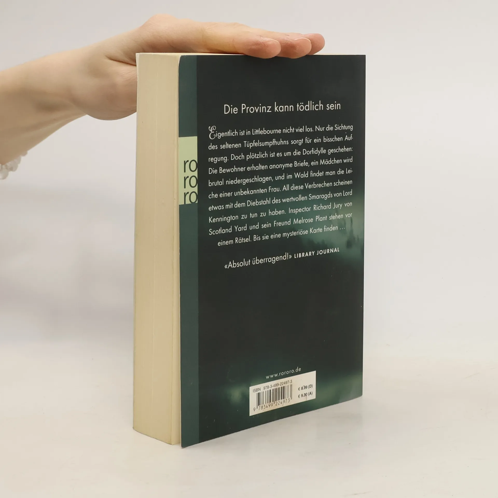Die Provinz kann tödlich sein. Eigentlich ist in Littlebourne nicht viel los. Nur die Sichtung des seltenen Tüpfelsumpfhuhns sorgt für ein bisschen Aufregung. Doch plötzlich ist es um die Dorfidylle geschehen: Die Bewohner erhalten anonyme Briefe, ein Mädchen wird brutal niedergeschlagen, und im Wald findet man die Leiche einer unbekannten Frau. All diese Verbrechen scheinen etwas mit dem Diebstahl des wertvollen Smaragds von Lord Kennington zu tun zu haben. Inspector Richard Jury von Scotland Yard und sein Freund Melrose Plant stehen vor einem Rätsel. Bis sie eine mysteriöse Karte finden ... «Absolut überragend!» LIBRARY JOURNAL