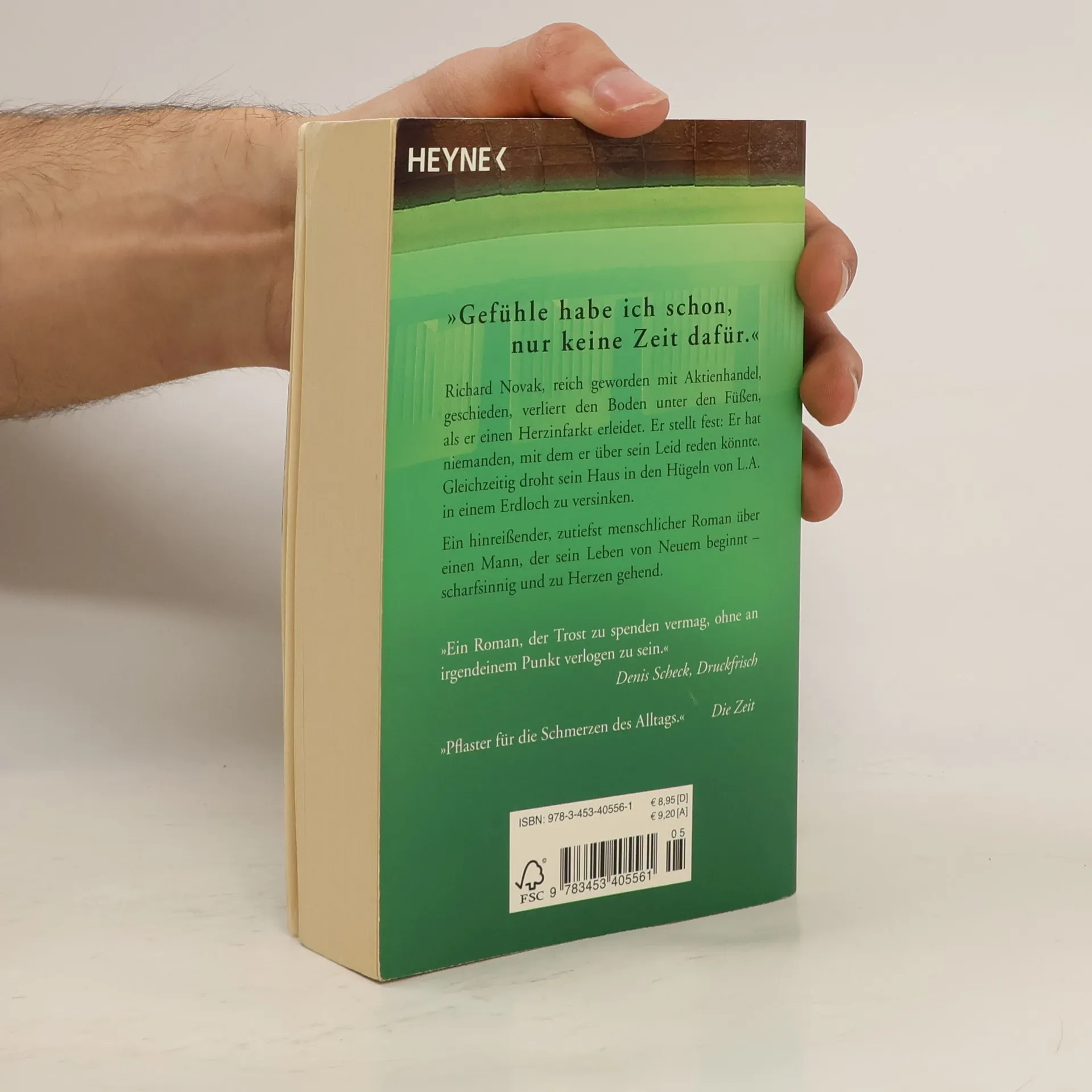 „Gefühle habe ich schon, nur keine Zeit dafür.“ Richard Novak, reich geworden mit Aktienhandel, geschieden, verliert den Boden unter den Füßen, als er einen Herzinfarkt erleidet. Er stellt fest: Er hat niemanden, mit dem er über sein Leid reden könnte. Gleichzeitig droht sein Haus in den Hügeln von L. A. in einem Erdloch zu versinken. Ein hinreißender, zutiefst menschlicher Roman über einen Mann, der sein Leben von Neuem beginnt – scharfsinnig und zu Herzen gehend.