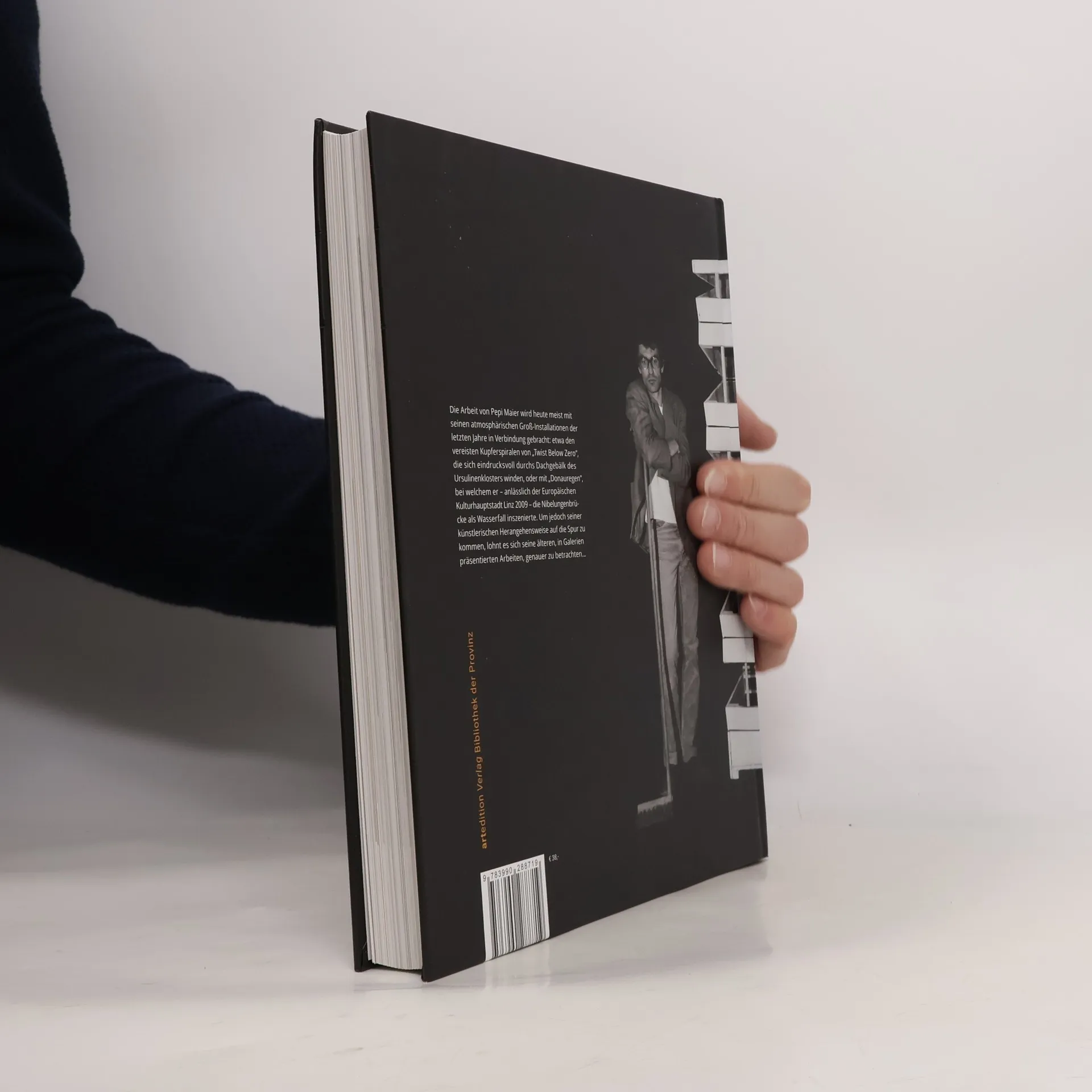 Die Arbeit von Pepi Maier wird heute meist mit seinen atmosphärischen Groß-Installationen der letzten Jahre in Verbindung gebracht: etwa den vereisten Kupferspiralen von Twist Below Zero, die sich eindrucksvoll durchs den Dachgebälk des Ursulinenklosters winden, oder mit Donauregen, bei welchem er – anlässlich der Europäischen Kulturhauptstadt Linz 09 – die Nibelungenbrücke als Wasserfall inszenierte. Um jedoch seiner künstlerischen Herangehensweise auf die Spur zu kommen, lohnt es sich einen weitgespannten Überblick über sein Werk, so wie ihn diese Publikation anstrebt, genauer zu betrachten. Auch wenn er ganz in der Tradition der concept art gewohnte Sichtweisen, Begriffe und Zusammenhänge hinterfragt, erlangt bei ihm jedoch nie das Konzept, gegenüber der materiellen Ausführung des Werks, dominante Bedeutung. Diese, sich nicht zuletzt hieraus speisende, hohe ästhetische Qualität wird ganz besonders in seinen aktuellen, ephemeren Arbeiten, wirksam und ermöglicht so auch Menschen, abseits eines einschlägigen ExpertInnensystems, eindrückliche Erfahrungen. ( Rainer Zendron im Vorwort)