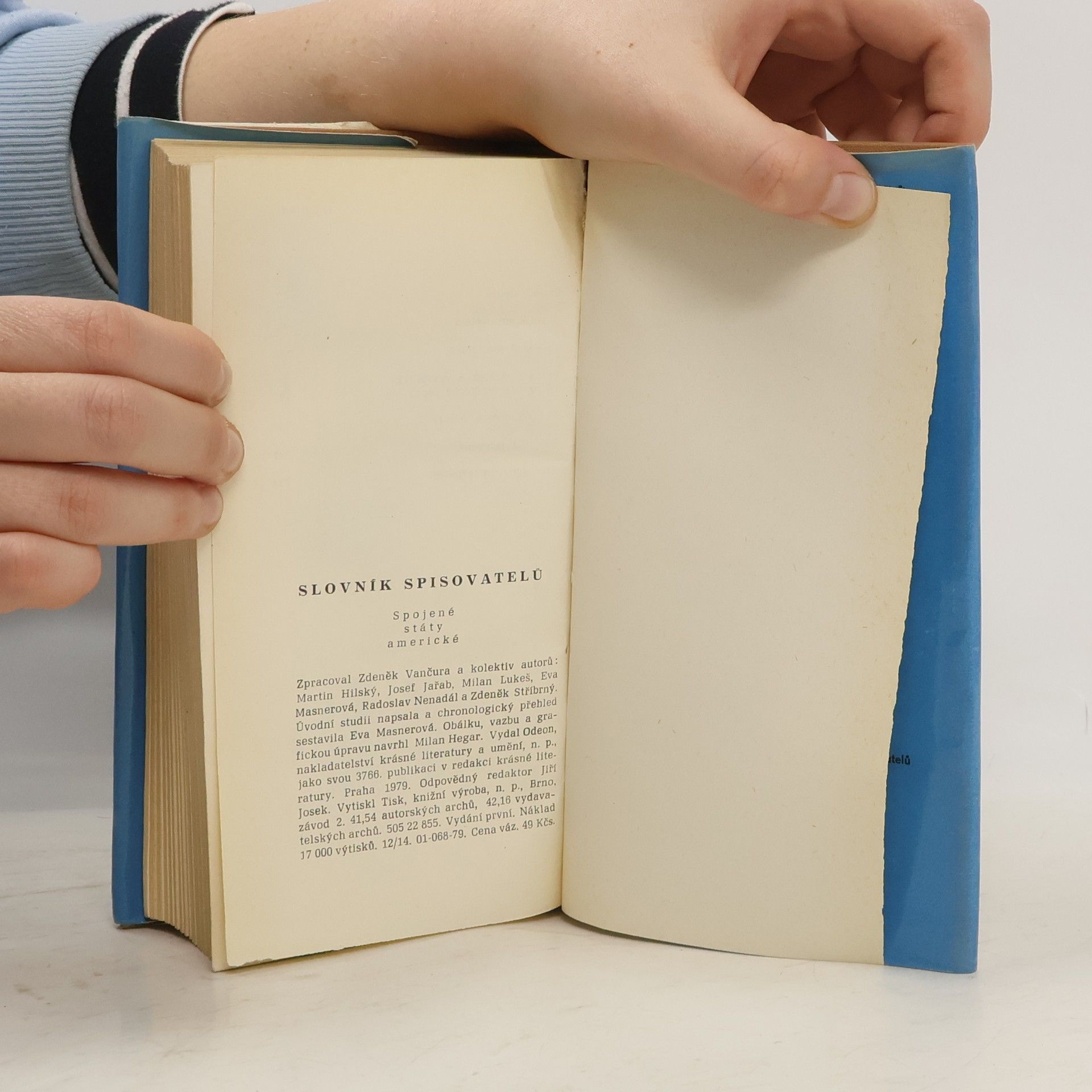 Slovník spisovatelů Spojených států amerických je dílem prof. dr. Zdeňka Vančury, DrSc. (1903-1974), který je autorem hesláře a většiny hesel. Slovník byl dokončen kolektivem jeho žáků a spolupracovníků, hlavní redakci převzala PhDr. Eva Masnerová, CSc. Slovník spisovatelů USA se snažípodat ucelený pohled na šíři literární produkce v této zemi od koloniálního období až po současnost. Zpracoval Zdeněk Vančura a kolektiv autorů za vedení Evy Masnerové: Martin Hilský, Josef Jařab, Milan Lukeš, Radoslav Nenadál a Zdeněk Stříbrný. Úvodní studii napsala a chronologický přehled sestavila Eva Masnerová. Vydání první. 01-068-79