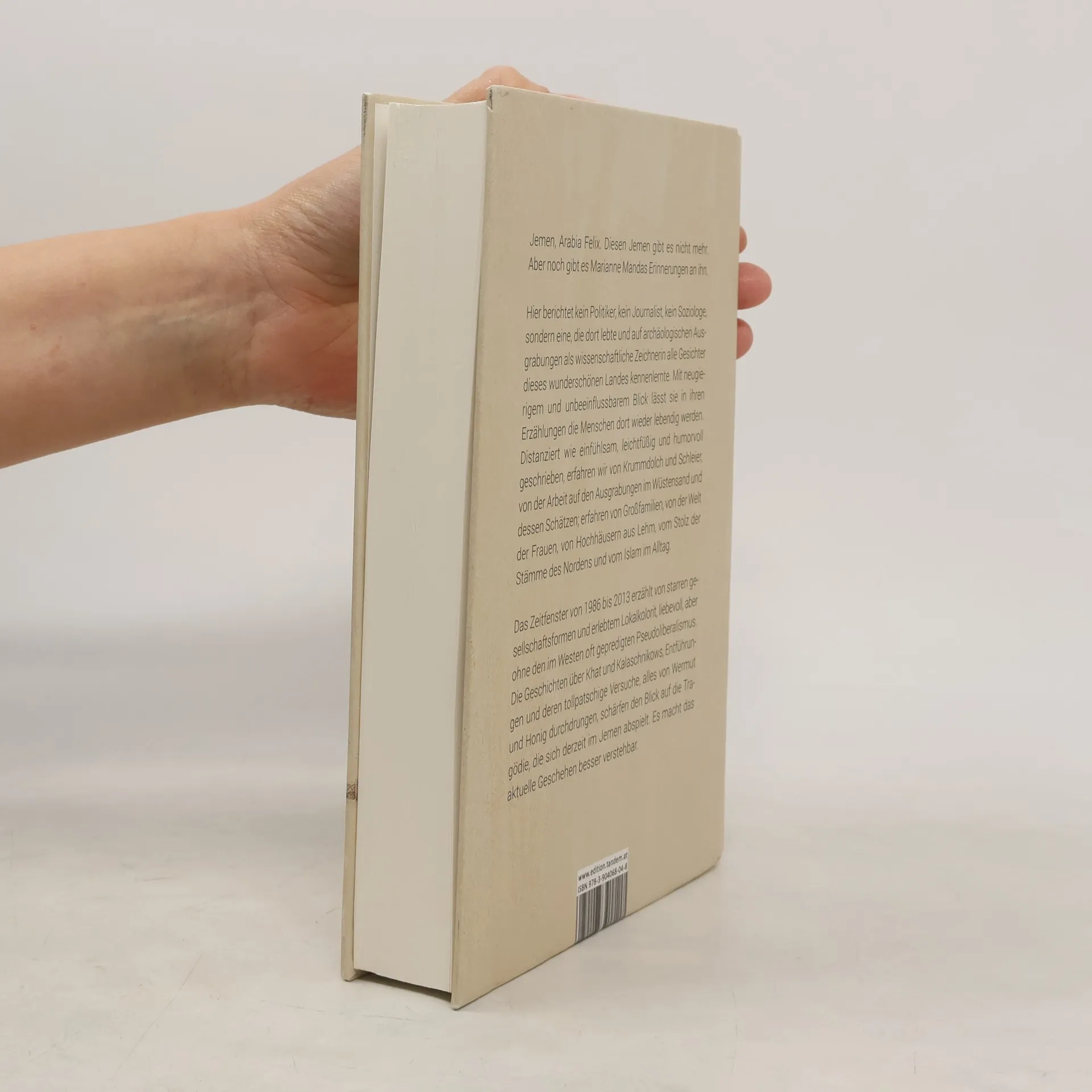Jemen, Arabia Felix. Diesen Jemen gibt es nicht mehr. Aber noch gibt es Marianne Mandas Erinnerungen an ihn. Hier berichtet kein Politiker, kein Journalist, sondern eine, die dort mehr als 30 Jahre lebte und auf archäologischen Ausgrabungen als wissenschaftliche Zeichnerin alle Gesichter dieses wunderschönen Landes kennenlernte. Mit ihren Geschichten werden die Menschen dort wieder lebendig. Mit neugierigem und unbeeinflussbarem Blick, distanziert wie einfühlsam, leichtfüßig und elegant geschrieben, erfahren wir von Krummdolch und Schleier, von der Arbeit auf den Ausgrabungen im Wüstensand und dessen Schätzen, von Hochhäusern, Großfamilien, der Frauenwelt, vom Stolz der Stämme des Nordens und vom Islam im Alltag. Die Weihrauchstraße und Marianne Mandas mit leiser Ironie gepfefferte Räuberpistolen versprechen ein spannendes Lesevergnügen. Das Zeitfenster von 1986 bis 2013 erzählt von starren Gesellschaftsformen und mitgelebtem Lokalkolorit, immer liebevoll, aber ohne den bei uns im Westen oft gepredigten Pseudoliberalismus. Qat und Kalaschnikows, Entführungen und deren tollpatschige Versuche, alles von Wermut und Honig durchdrungen, schärfen den Blick auf die unvergleichliche Tragödie, welche sich derzeit im Jemen abspielt. Es macht das aktuelle Geschehen verstehbarer. Insofern enthält Marianne Mandas Bericht durch Inneneinsichten der gesellschaftlichen Realität des Landes denn doch einen „politischen Charakter“.