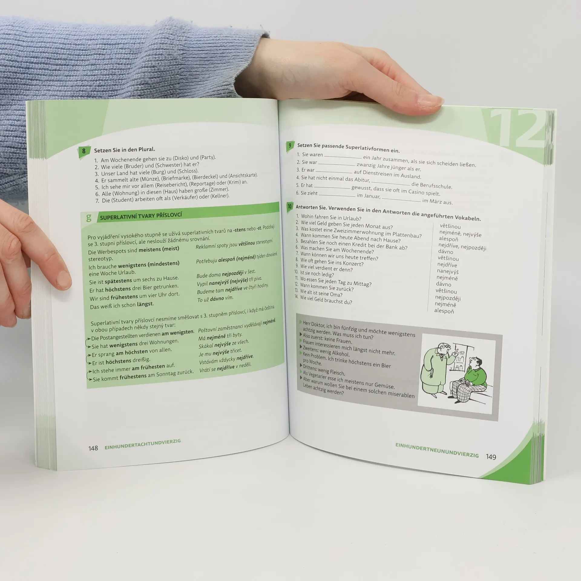 Kniha je pro studenty, kteří si chtějí zopakovat, doplnit a rozšířit své středoškolské znalosti němčiny a získat větší jistotu v konverzaci. Je vhodná jak pro začátečníky, tak i pro studenty jazykově lépe vybavené a postupuje - zvláště v počátečních lekcích - svižnějším tempem. Naučí vás asi 1000 slov a slovních spojení, solidně se vyjadřovat v základních životních situacích a pomocí nahrávek též porozumět projevu rodilého mluvčího. Mluvnice je omezena na jevy důležité pro ústní komunikaci a četbu obecných i obecně ekonomických text. Výběr těchto jevů i jejich rozsah je oproštěn od méně důležitých pravidel a výjimek.