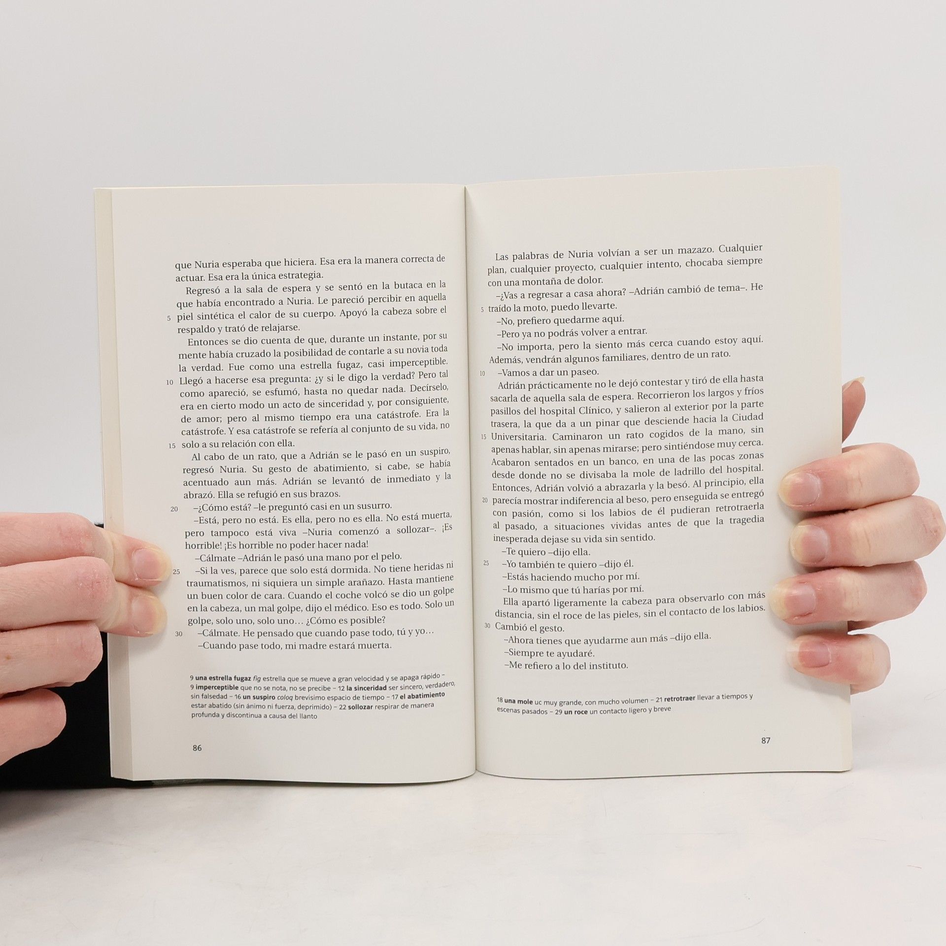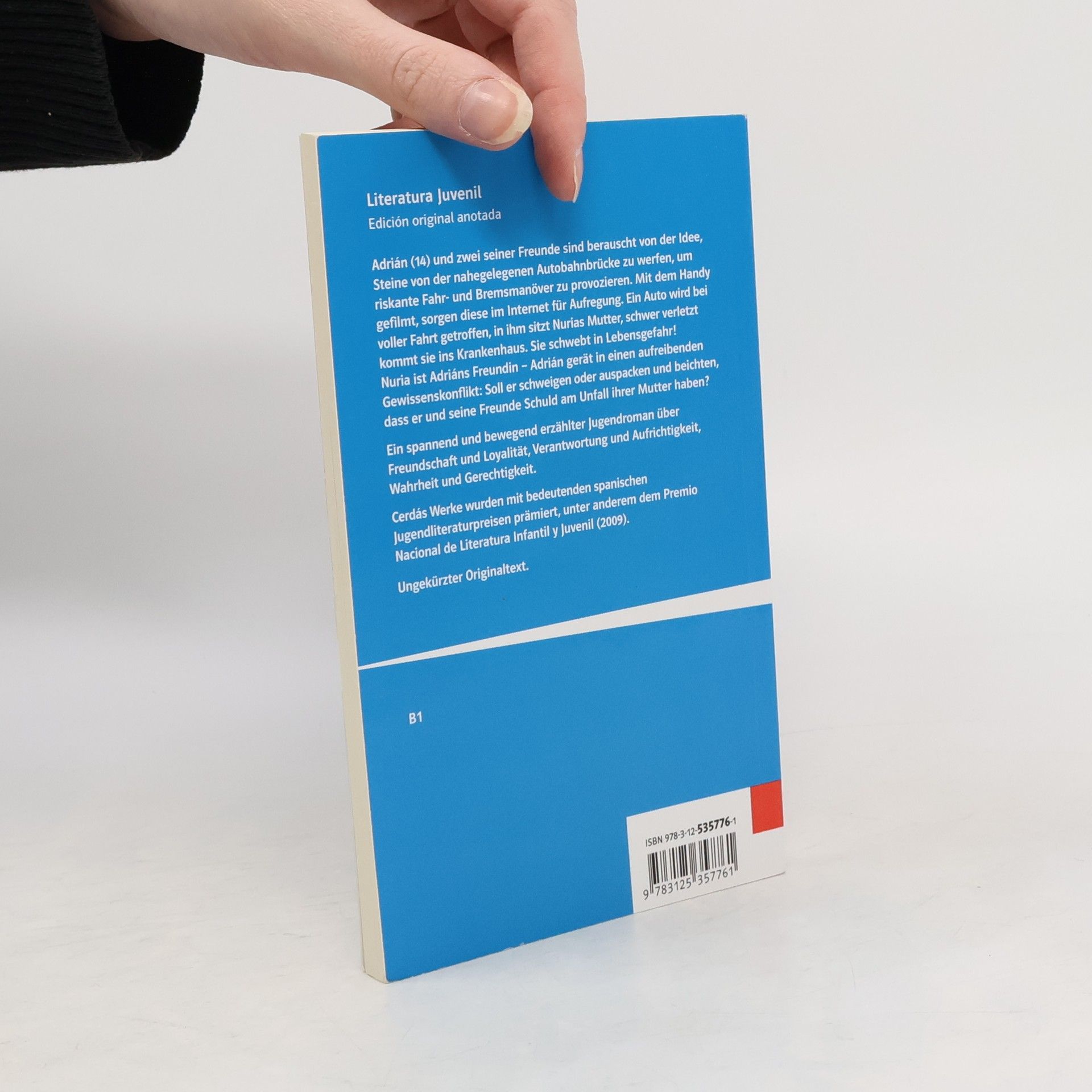 Adrián (14) und zwei seiner Freunde sind berauscht von der Idee, Steine von der nahegelegenen Autobahnbrücke zu werfen, um riskante Fahr- und Bremsmanöver zu provozieren. Mit dem Handy gefilmt, sorgen diese im Internet für Aufregung. Ein Auto wird bei voller Fahrt getroffen, in ihm sitzt Nurias Mutter, schwer verletzt kommt sie ins Krankenhaus. Sie schwebt in Lebensgefahr! Nuria ist Adriáns Freundin – Adrián gerät in einen aufreibenden Gewissenskonflikt: Soll er schweigen oder auspacken und beichten, dass er und seine Freunde Schuld am Unfall ihrer Mutter haben? Ein spannend und bewegend erzählter Jugendroman über Freundschaft und Loyalität, Verantwortung und Aufrichtigkeit, Wahrheit und Gerechtigkeit. Cerdás Werke wurden mit bedeutenden spanischen Jugendliteraturpreisen prämiert, unter anderem dem Premio Nacional de Literatura Infantil y Juvenil (2009). Ungekürzter Originaltext.