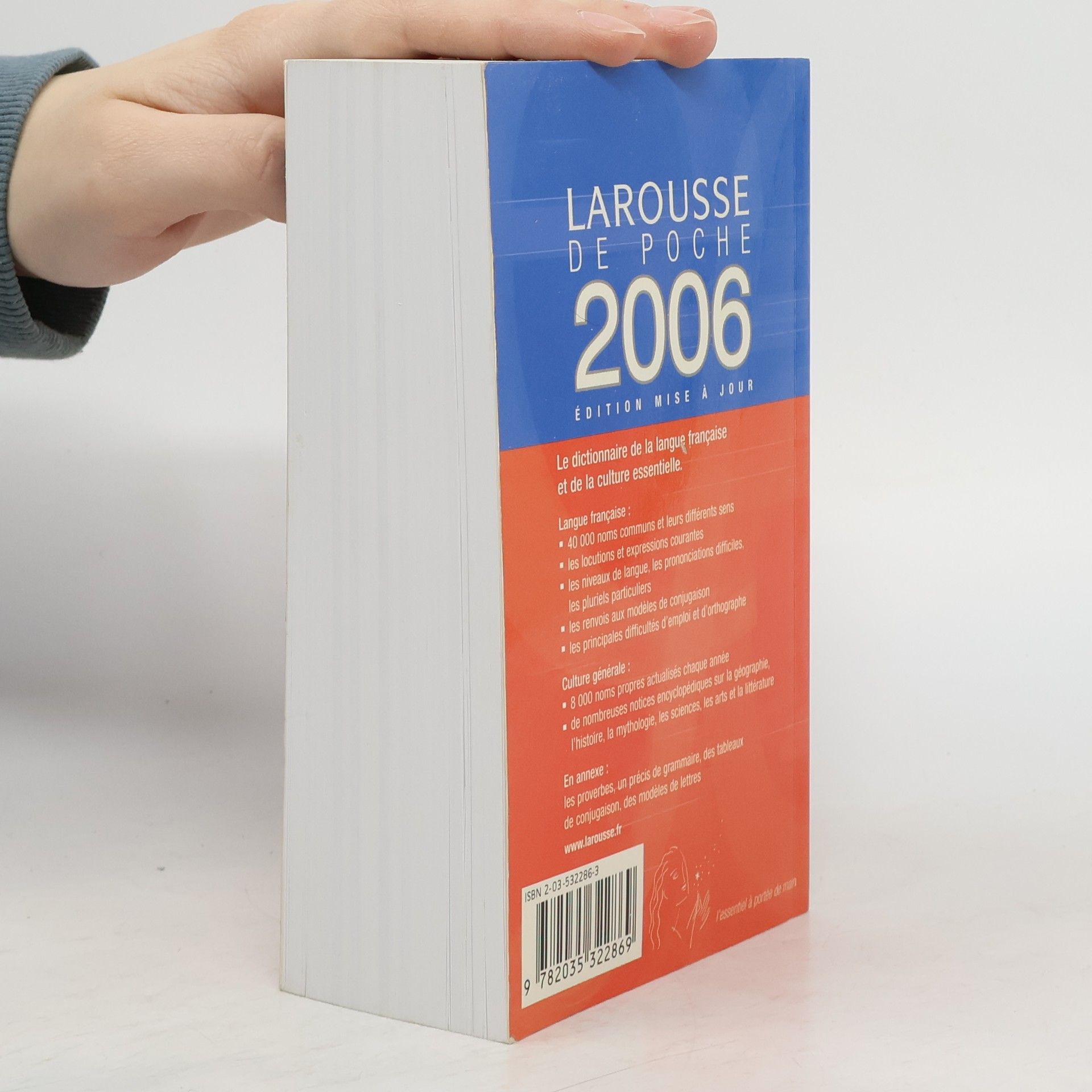 Le dictionnaire de la langue française et de la culture essentielle. Langue française : 40 000 noms communs et leurs différents sens ; les locutions et expressions courantes ; les niveaux de langue, les prononciations difficiles, les pluriels particuliers ; les renvois aux modèles de conjugaison ; les principales difficultés d'emploi et d'orthographe. Culture générale : 8 000 noms propres actualisés chaque année ; de nombreuses notices encyclopédiques sur la géographie, l'histoire, la mythologie, les sciences, les arts et la littérature. En annexe : les proverbes, un précis de grammaire, des tableaux de conjugaison, des modèles de lettres.