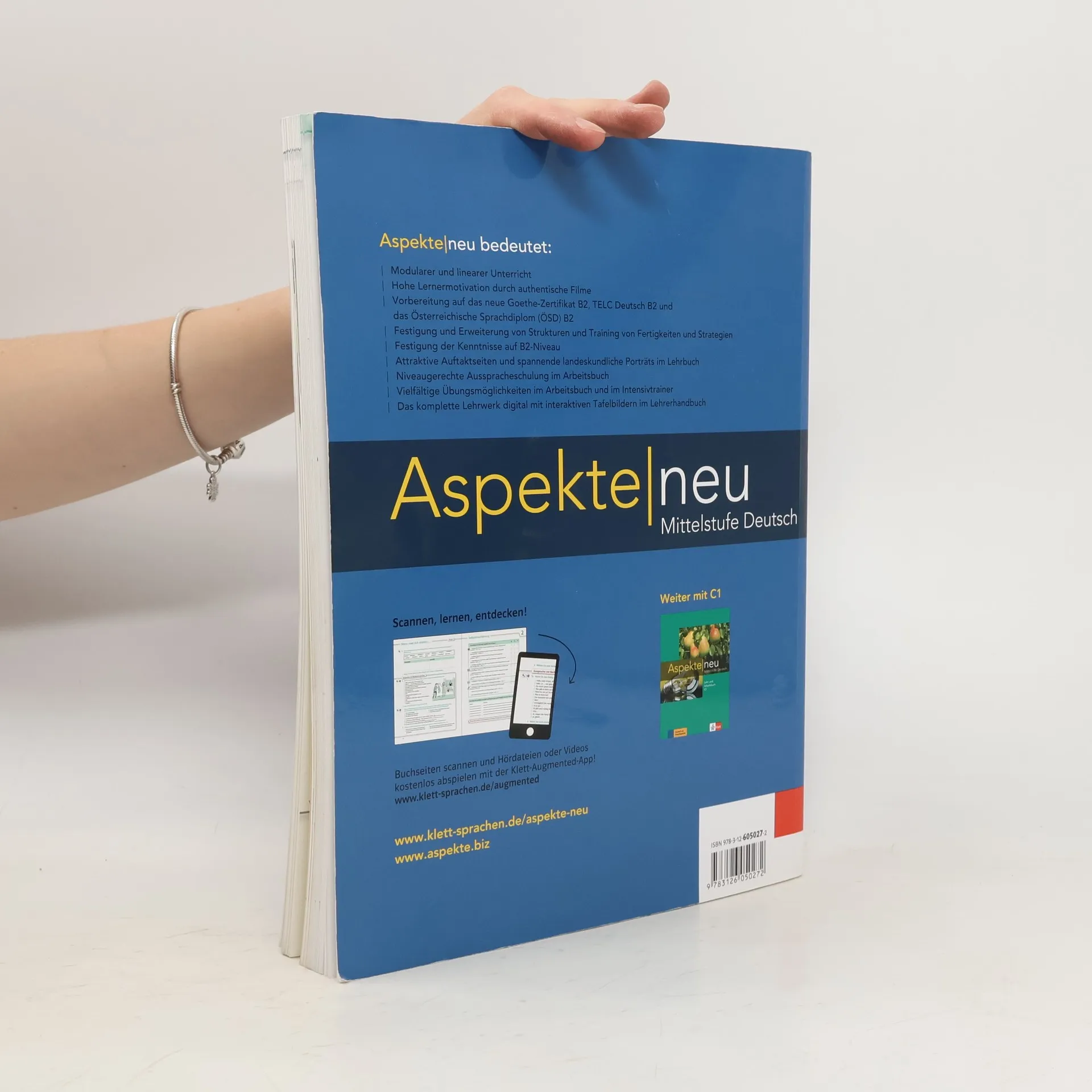 Das Lehr- und Arbeitsbuch (Kapitel 1–5) zu Aspekte neu B2 ermöglicht modularen und linearen Unterricht bereitet auf das Goethe-Zertifikat B2, TELC Deutsch B2 und das Österreichische Sprachdiplom (ÖSD) B2 vor festigt und erweitert Strukturen und trainiert Fertigkeiten und Strategien enthält attraktive Auftaktseiten und spannende landeskundliche Porträts bietet eine niveaugerechte Ausspracheschulung und alle Hörtexte zum Arbeitsbuch-Teil auf der Audio-CD