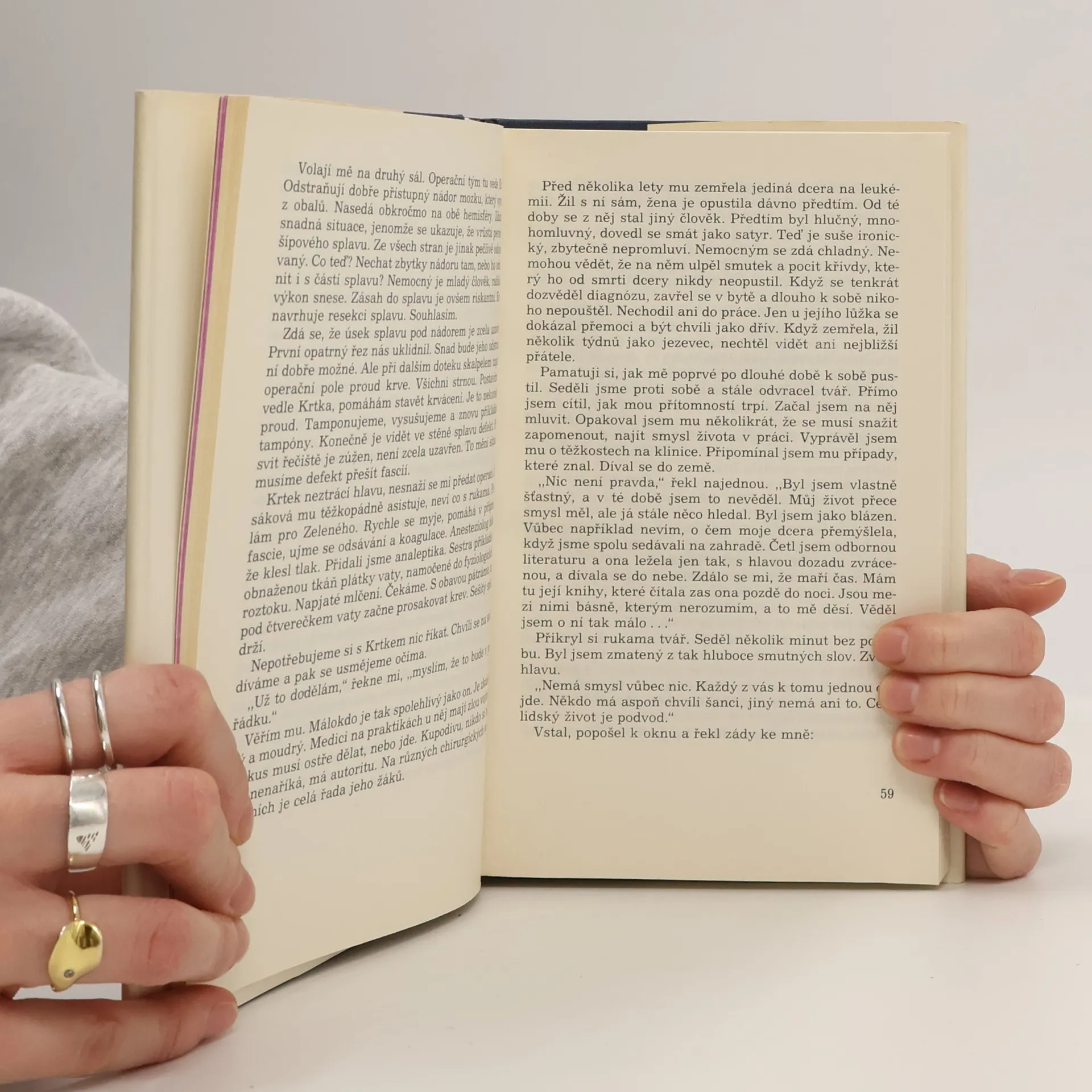Román z lékařského prostředí vypráví o životě a práci úspěšného neurochirurga a o osudech jeho pacientů. Hlavní postavou příběhu je stárnoucí zkušený lékař, stojící před riskantní operací malého pacienta "Uzlíka", jehož mozkový nádor označil celý tým neurochirurgů za příliš pokročilý na to, aby byl úspěšně operován. Během pár hodin, které do operace zbývají, nahlédneme do profesorových vzpomínek, seznámíme se s jeho soukromím a prací na klinice ...