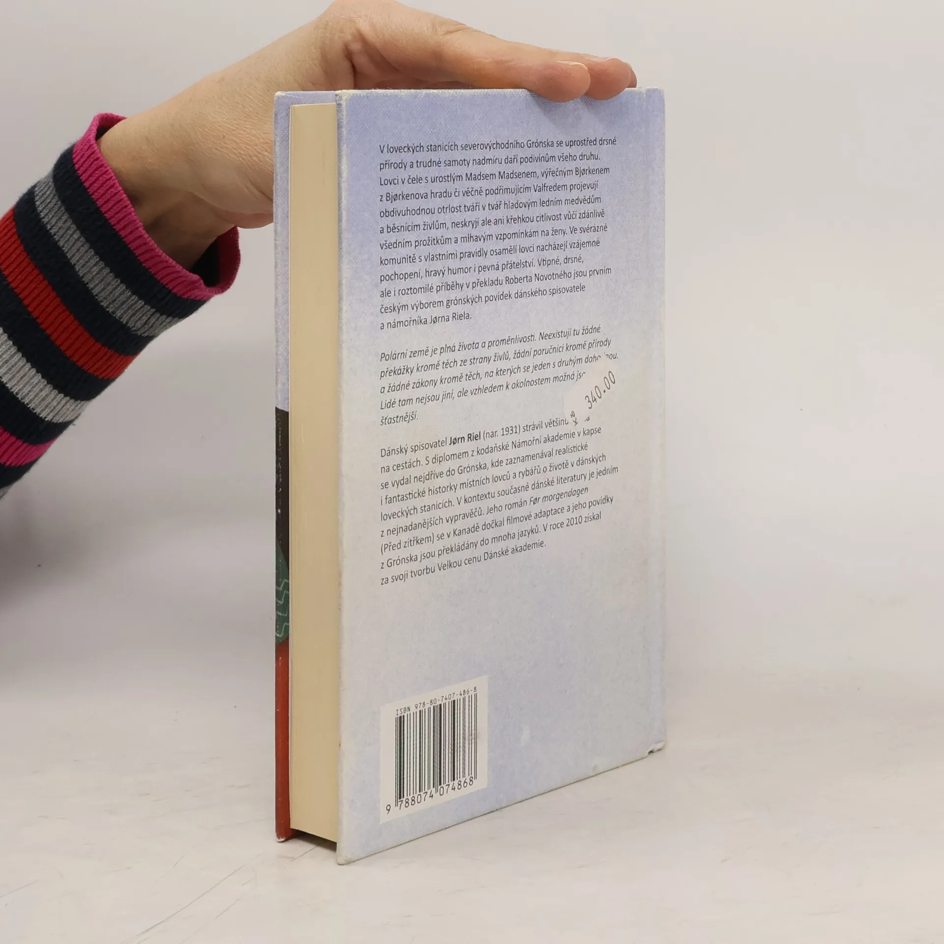 Dánský spisovatel Jorn Riel strávil většinu života na cestách. S diplomem z Námořní akademie v Kodani v kapse se vydal nejdříve do Grónska, kde zaznamenával realistické i fantastické historky místních rybářů a příběhy o životě v dánských loveckých stanicích podél grónského pobřeží, kde se uprostřed drsné přírody a trudné samoty nadmíru daří podivínům všeho druhu. Vtipné, drsné, ale i roztomilé povídky jsou prvním českým výborem z Rielových historek.