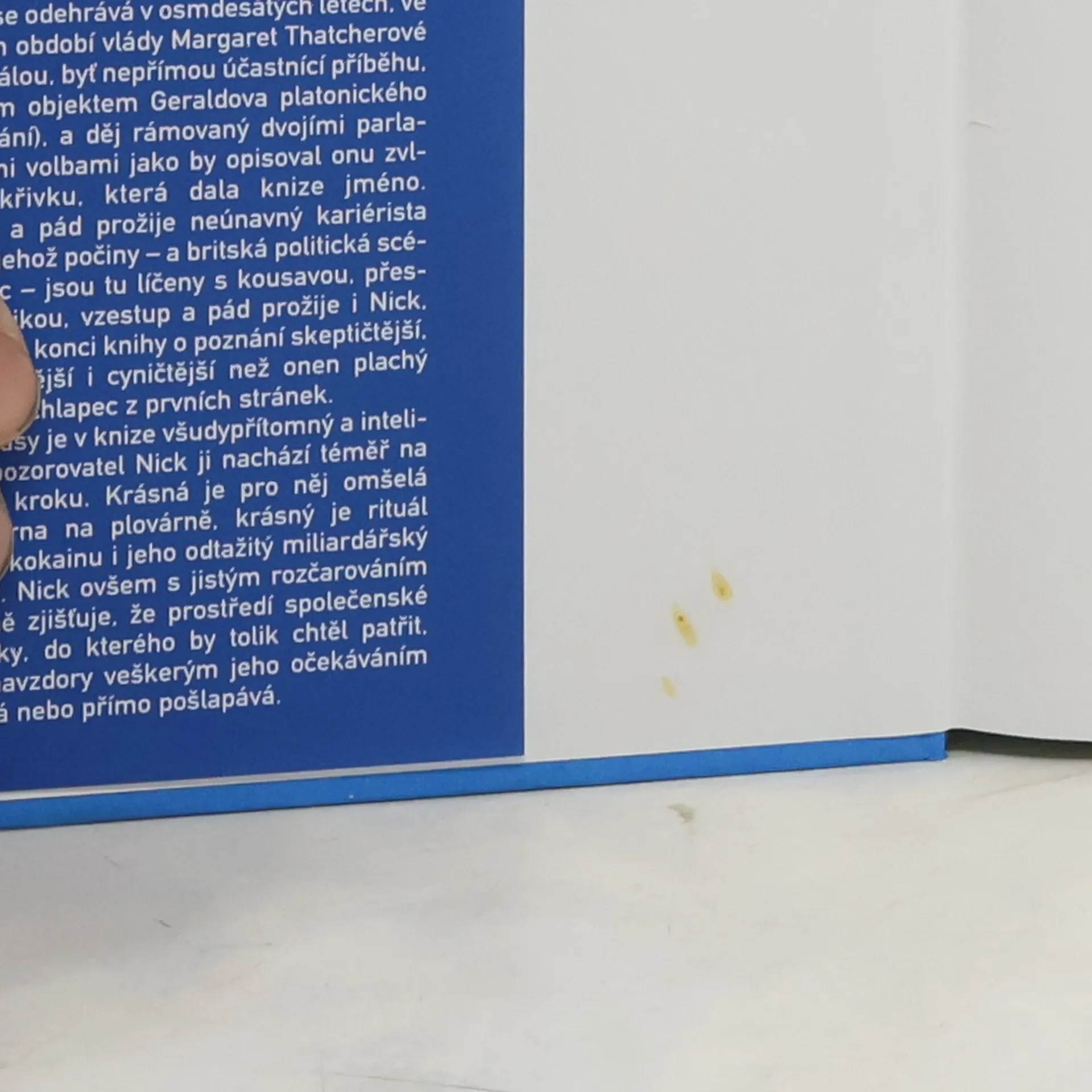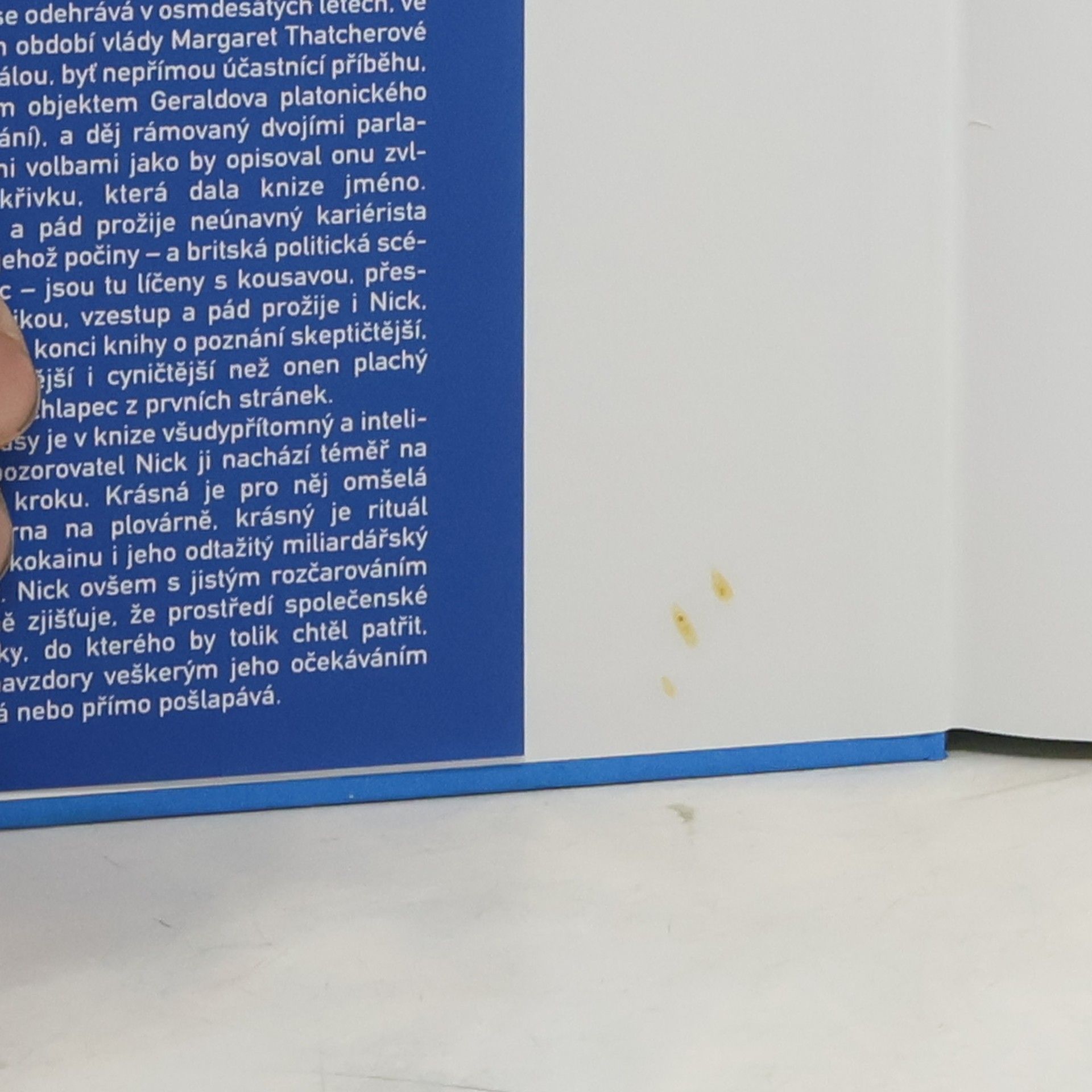 Nick Guest, mladík ze skromných poměrů a čerstvý absolvent Oxfordu, dostane možnost sdílet domácnost s rodinou konzervativního poslance Geralda Feddena. V honosném londýnském domě Feddenových se však nesmělý, kultivovaný Nick, prahnoucí po všem vytříbeném a stylovém, rozhodně necítí jako pouhý podnájemník. Feddenovy – dravého kariéristu Geralda, jeho noblesní manželku Rachel, syna Tobyho, svou platonickou lásku, i maniodepresivní dceru Catherine – přijme beze zbytku za svou druhou rodinu. Pak však přichází první skutečná láska, první seznámení s londýnskou gay scénou, první lajna kokainu, první setkání s AIDS. Vynikající román, za nějž autor r. 2004 získal Bookerovu cenu.
