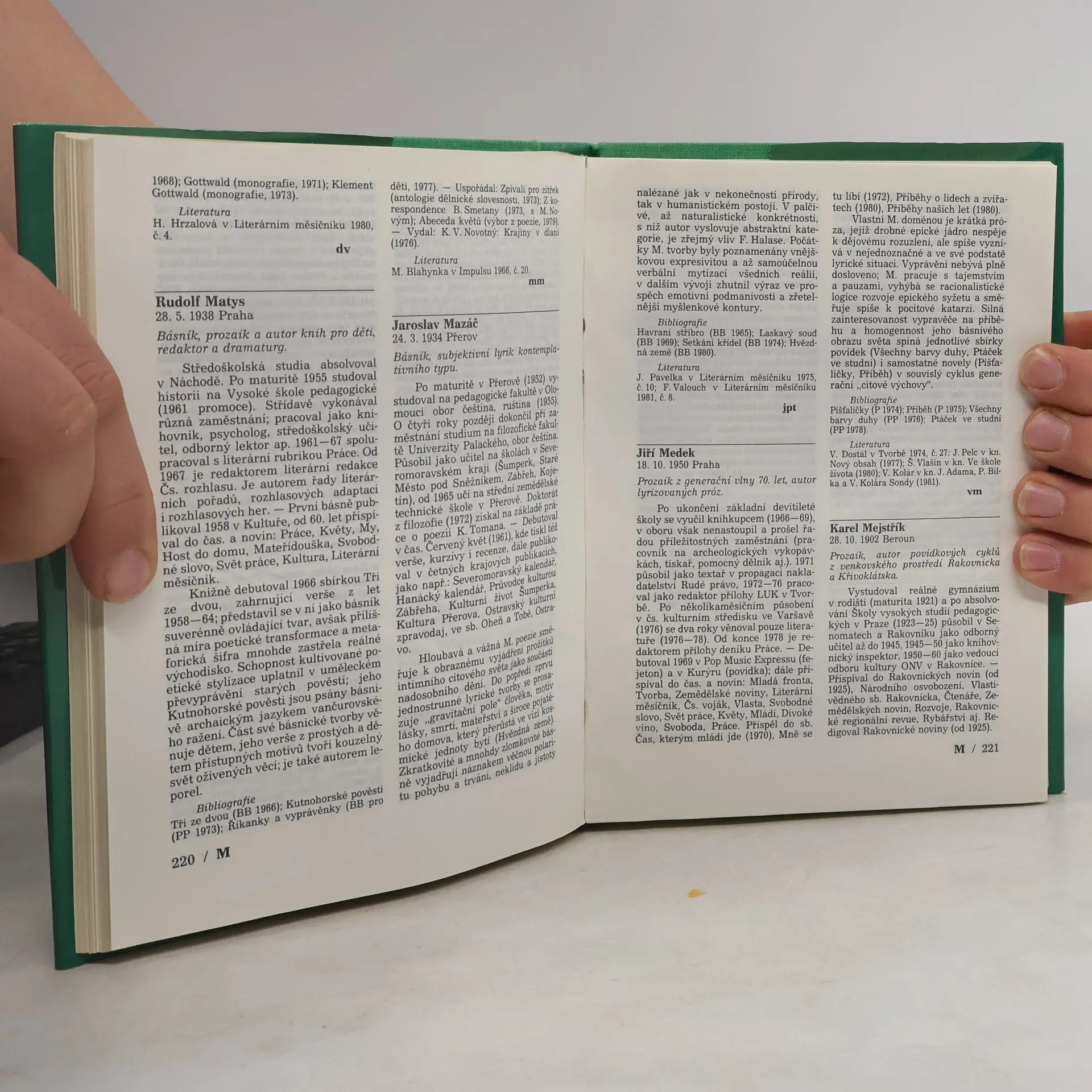 Básníci, prozaici, dramatici, literární vědci a kritici publikující v tomto období. Slovník vybavený úplnou bibliografií knižně vydaných prací uváděných autorů a nejdůležitější literaturou o nich, je určen všem, kdo se nějakým způsobem zajímají o naší současnou literaturu.