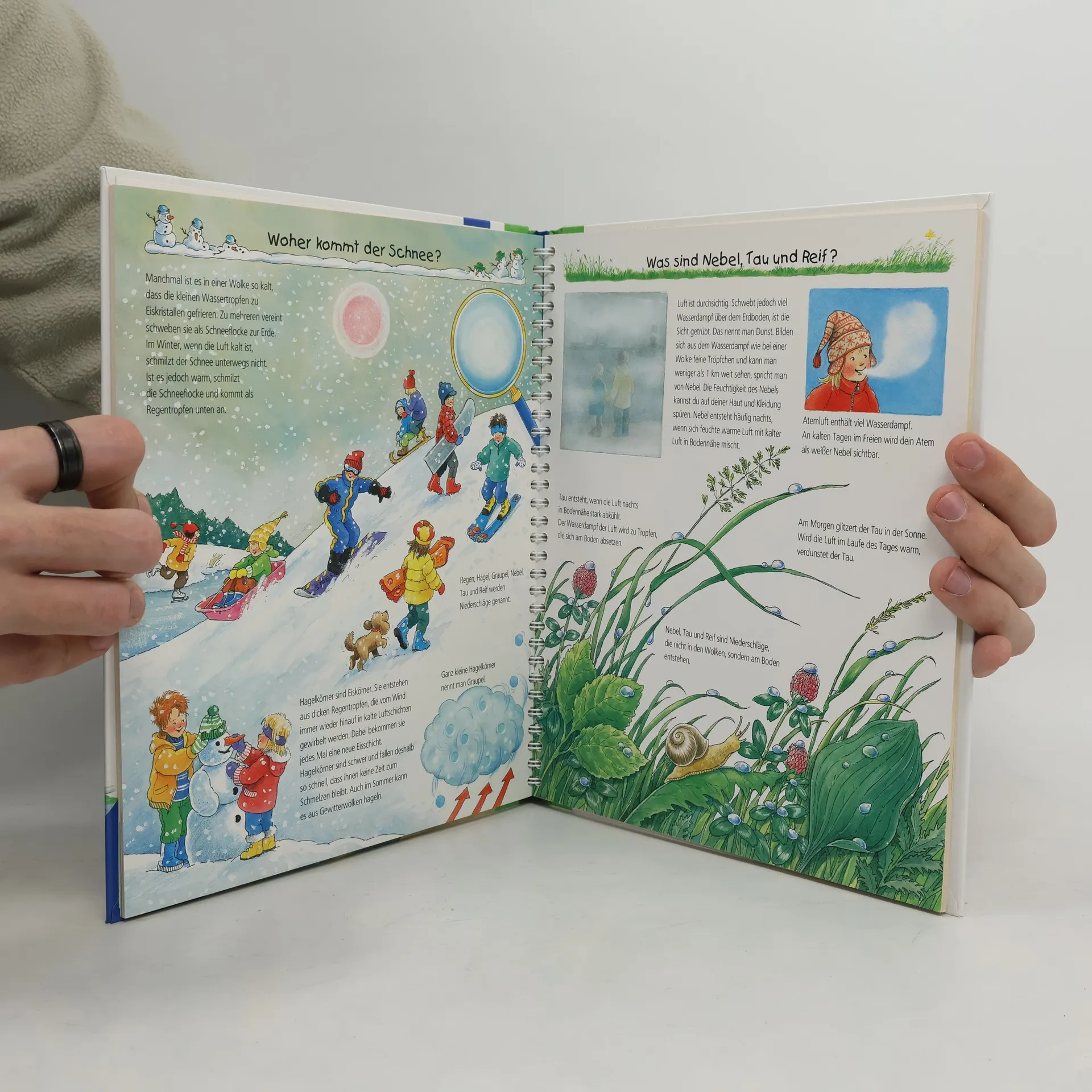 Wieso regnet, schneit und stürmt es manchmal? Wann sieht man einen Regenbogen? Wie entsteht ein Gewitter? Und warum gibt es Jahreszeiten? Kinder ab 4 Jahren haben viele Fragen rund um das Wetter. In diesem Buch finden sie detailreiche Bilder, zahlreiche Klappen und leicht verständliche Texte, die Antworten darauf geben. Eine integrierte Bastelvorlage für eine Wetteruhr ermöglicht es den Kindern, das Wetter selbst zu beobachten. Die Sachbuchreihe für Kinder von 4–7 Jahren lädt dazu ein, täglich Neues zu entdecken und beantwortet viele Fragen, die dabei aufkommen. Warum sind die Dinosaurier ausgestorben? Wo ist die Sonne in der Nacht? Wozu brauchen wir das Blut? Die beliebte Reihe gibt Antworten auf Augenhöhe und behandelt verschiedene Themen aus der Alltags- und Interessenswelt der Kinder altersgerecht und mit viel Liebe zum Detail. Detailreiche Bilder, verständliche Sachtexte und überraschende Klappen veranschaulichen Bewegungen und Abläufe, sodass Kinder sich ihre Themen selbst erschließen können. Der Spaß am eigenhändigen Entdecken, die liebevolle Umsetzung und die qualitativ hochwertige Ausstattung garantieren langanhaltende Freude an jedem einzelnen Buch.