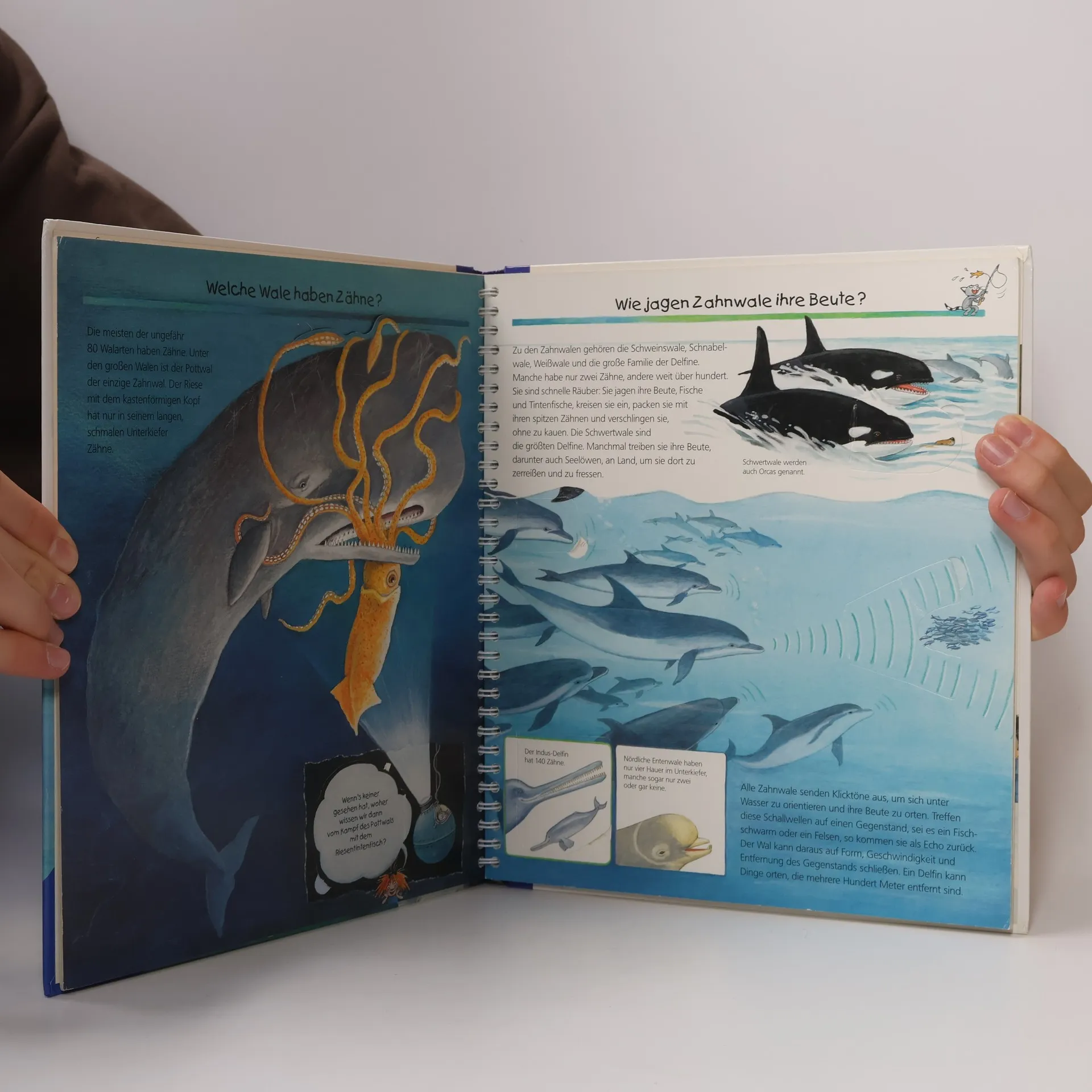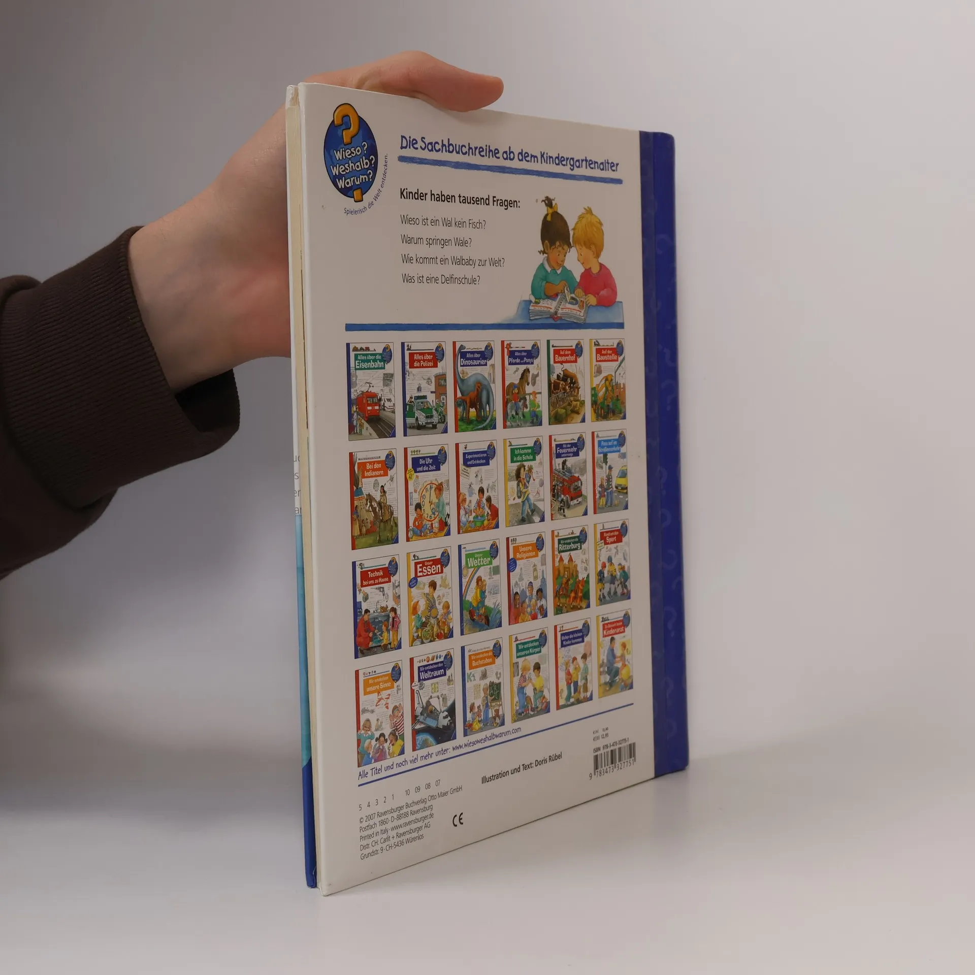 Ob Blauwal, Orca, Pottwal oder Delfin – viele Kinder sind von den großen, sanften Meeressäugetieren fasziniert. Diese Tiere gehören zur Familie der Wale, die seit Millionen von Jahren die Ozeane bevölkern. Wie konnten sie so groß werden? Was fressen sie? Wie werden Walbabys geboren? Mit beeindruckenden Bildern, spielerischen Klappen und leicht verständlichen Texten gibt das Buch Antworten auf diese und viele weitere Fragen. Kinder können ihre Lieblingstiere selbstständig betrachten und dabei Spannendes entdecken. Die Sachbuchreihe richtet sich an Kinder von 4–7 Jahren, die täglich Neues entdecken und viele Fragen haben. Warum sind die Dinosaurier ausgestorben? Wo ist die Sonne in der Nacht? Wozu brauchen wir das Blut? Diese beliebte Reihe beantwortet Fragen auf Augenhöhe und beleuchtet verschiedene Themen aus der Alltagswelt der Kinder mit viel Liebe zum Detail. Detailreiche Bilder, verständliche Texte und überraschende Klappen, die Bewegungen oder Abläufe veranschaulichen, helfen Kindern, sich ihre Themen selbst zu erschließen. Der Spaß am eigenhändigen Entdecken, die liebevolle Umsetzung und die hochwertige Ausstattung garantieren langanhaltende Freude an jedem einzelnen Buch.