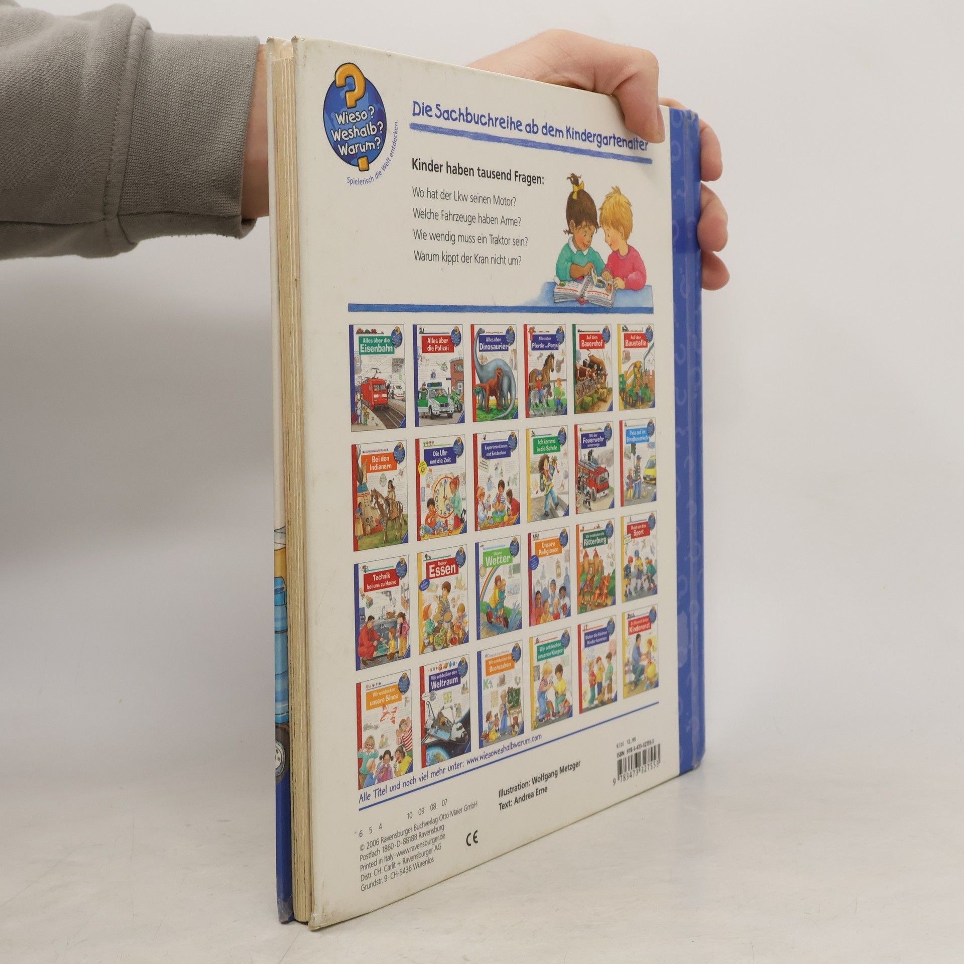 Ob auf der Baustelle, der Autobahn oder dem Bauernhof – überall sind Fahrzeuge im Einsatz. Sie fahren auf Reifen oder Ketten und beherrschen tolle Tricks: Manche haben einen beweglichen Hubarm, andere eine ausfahrbare Leiter oder Spezialwerkzeug zum Heben, Graben oder Bohren. Wie das alles funktioniert, erklärt dieses Buch. Mit Klappen schauen Kinder unter Motorhauben, bewegen die Fahrzeuge und erschließen sich dabei technische Zusammenhänge. Wieso? Weshalb? Warum? Die Sachbuchreihe für Kinder von 4–7 Jahren Jeden Tag entdecken Kinder etwas Neues – da kommen viele Fragen auf. Warum sind die Dinosaurier ausgestorben? Wo ist die Sonne in der Nacht? Wozu brauchen wir das Blut? Die beliebte Sachbuchreihe Wieso? Weshalb? Warum? gibt Kindern Antworten auf Augenhöhe. Dabei werden die unterschiedlichsten Themen aus der Alltags- und Interessenswelt der Kinder altersgerecht und mit viel Liebe zum Detail unter die Lupe genommen. Detailreiche Bilder, verständliche Sachtexte und überraschende Klappen, die Bewegungen oder Abläufe veranschaulichen und hinter die Dinge blicken lassen, ermöglichen Kindern, sich ihre Themen selbst zu erschließen. Der Spaß am eigenhändigen Entdecken, die liebevolle Umsetzung und die qualitativ hochwertige Ausstattung garantieren langanhaltende Freude an jedem einzelnen Buch.