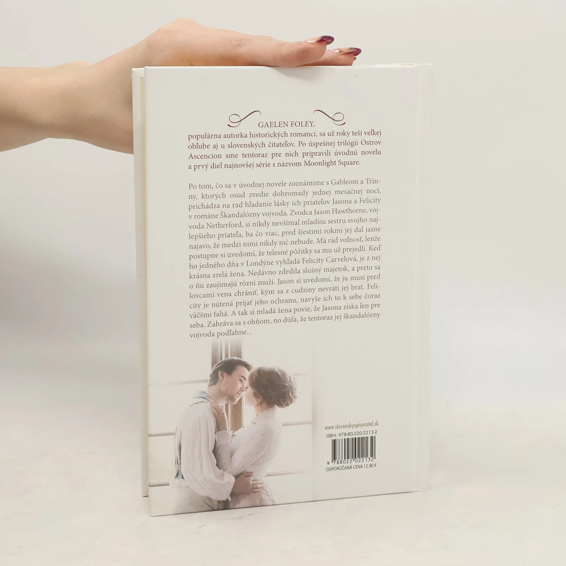 Gaelen Foley, populárna autorka historických romancí, sa už roky teší veľkej obľube aj u slovenských čitateľov. Po úspešnej trilógii Ostrov Ascencion sme tentoraz pre nich pripravili úvodnú novelu a prvý diel najnovšej regentskej série s názvom Moonlight Square. Po tom, čo sa v úvodnej novele zoznámime s Gableom a Trinny, ktorých osud zvedie dohromady jednej mesačnej noci, prichádza na rad hľadanie lásky ich priateľov Jasona a Felicity v románe Škandalózny vojvoda. Zvodca Jason Hawthorne, vojvoda Netherford, si nikdy nevšímal mladšiu sestru svojho najlepšieho priateľa, ba čo viac, pred šiestimi rokmi jej dal jasne najavo, že medzi nimi nikdy nič nebude. Má rád voľnosť, lenže postupne si uvedomí, že telesné pôžitky sa mu už prejedli. Keď ho jedného dňa v Londýne vyhľadá Felicity Carvelová, je z nej krásna zrelá žena. Nedávno zdedila slušný majetok, a tak sa o ňu zaujímajú rôzni muži. Jason si uvedomí, že ju musí pred lovcami vena chrániť, kým sa z cudziny nevráti jej brat. Felicity je nútená prijať jeho ochranu, navyše ich to k sebe čoraz väčšmi ťahá. A tak si mladá žena povie, že Jasona získa len pre seba. Zahráva sa s ohňom, no dúfa, že tentoraz jej škandalózny vojvoda podľahne... V sérii 0.5 a 1. díl.