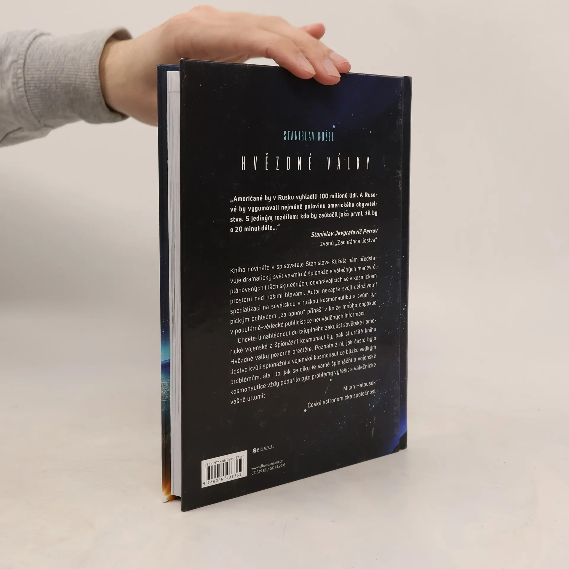 Když se řekne Hvězdné války, většina lidí si vybaví slavný stejnojmenný film George Lucase. Star Wars jsou výpravnou podívanou, klasickou pohádkou boje Dobra se Zlem. I tato filmová série ovšem ukazuje, že minimálně od počátků kosmonautiky žijeme v zajetí představ o nevyhnutelnosti bojového střetu ve vesmíru. A že nepůjde jen o válku s jinými civilizacemi, ale i o vyřizování si našich, čistě pozemských účtů. Kniha novináře a spisovatele Stanislava Kužela nám představuje dramatický svět vesmírné špionáže a válečných manévrů, plánovaných i těch skutečných, odehrávajících se v kosmickém prostoru nad našimi hlavami. Autor nezapře svoji celoživotní specializaci na sovětskou a ruskou kosmonautiku a svým typickým pohledem „za oponu“ přináší v knize mnoho doposud v populárně-vědecké publicistice neuváděných informací. Chcete-li nahlédnout do tajuplného zákulisí sovětské i americké vojenské a špionážní kosmonautiky, pak si určitě knihu Hvězdné války pozorně přečtěte. Poznáte z ní, jak často bylo lidstvo kvůli špionážní a vojenské kosmonautice blízko velikým problémům, ale i to, jak se díky té samé špionážní a vojenské kosmonautice vždy podařilo tyto problémy vyřešit a válečnické vášně utlumit.