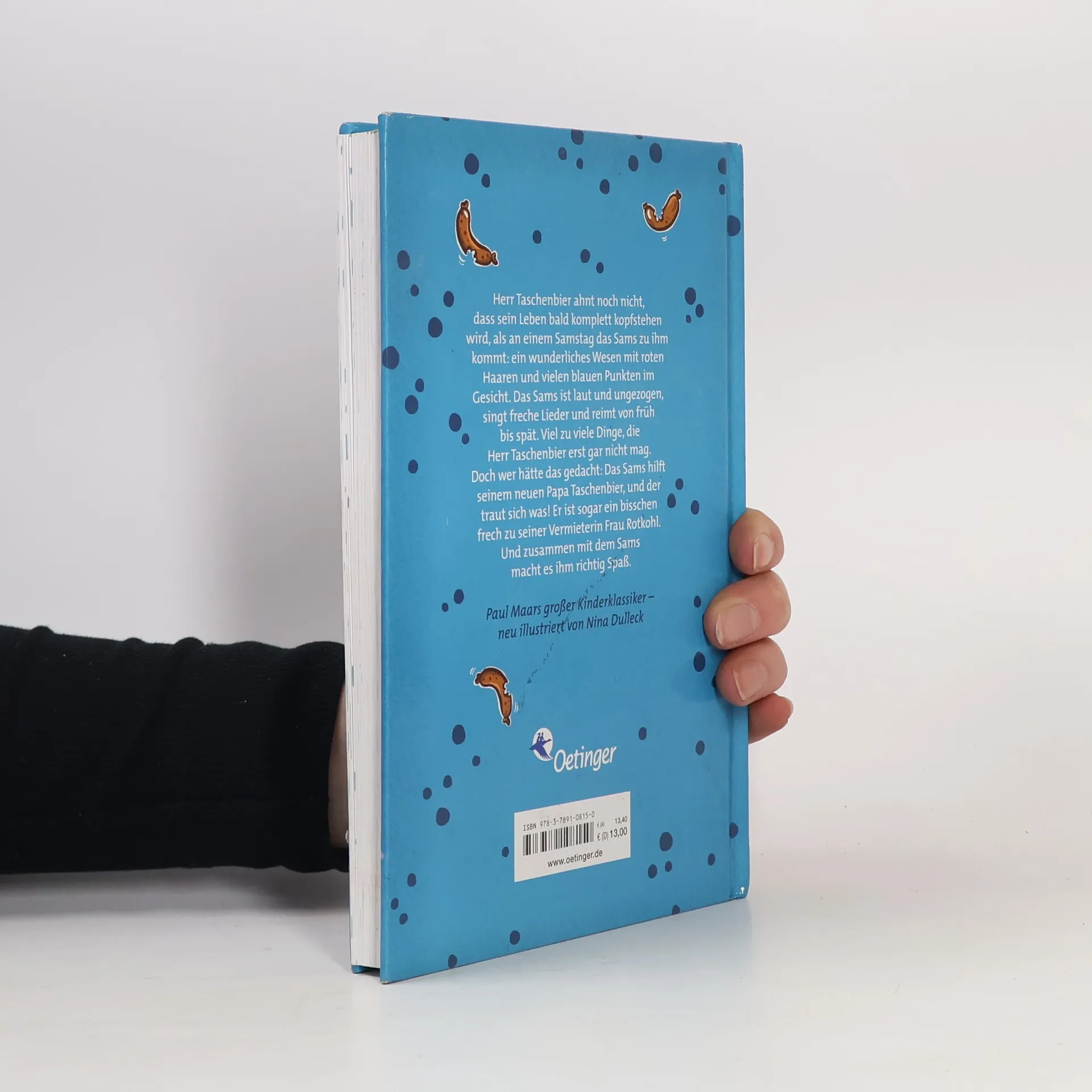 Immer wieder samstags! Wie aus dem Nichts taucht an einem Samstag ein eigenartiges Wesen mit roten Haaren, Trommelbauch und blauen Punkten im Gesicht bei Herrn Taschenbier auf: das Sams. Es ist laut, frech, singt Lieder und reimt von früh bis spät. Lauter Dinge, die Herr Taschenbier eigentlich gar nicht mag. Und dennoch haben die beiden eine Woche lang richtig viel Spaß zusammen. Charmant, frech und mit üppig gestalteten Szenen von Nina Dulleck neu illustriert: der Kinderklassiker von Paul Maar! Die Bände der Sams-Reihe sind sowohl mit den Original-Illustrationen von Paul Maar erhältlich als auch modern interpretiert von Star-Illustration Nina Dulleck: Band 1: Eine Woche voller Samstage Band 2: Am Samstag kam das Sams zurück Band 3: Neue Punkte für das Sams Band 4: Ein Sams für Martin Taschenbier Band 5: Sams in Gefahr Band 6: Onkel Alwin und das Sams Band 7: Sams im Glück Band 8: Ein Sams zu viel Band 9: Das Sams feiert Weihnachten Band 10: Das Sams und der blaue Drache Band 11: Das Sams und die große Weihnachtssuche
