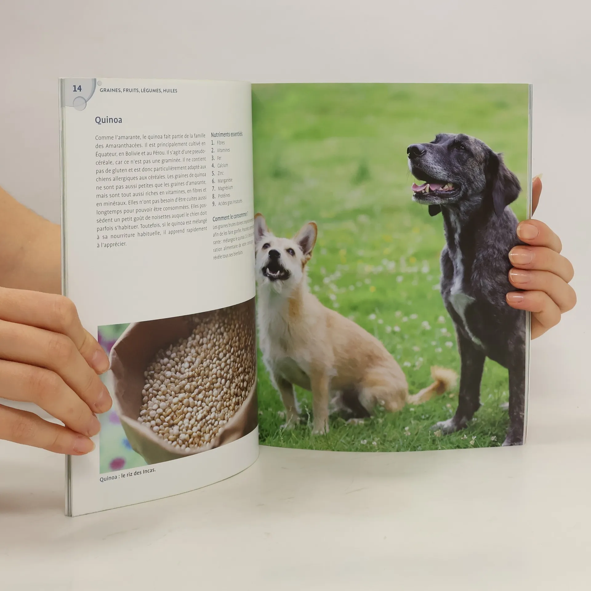 Quels super-aliments sont recommandés pour nos compagnons, lesquels sont interdits ?Tous les bienfaits des graines, huiles, fruits, légumes et herbes pour la santé de votre chien.Tout ce qu’il fait savoir sur l’amarante, le gingembre, l’huile de coco, le pissenlit…, et sur la façon dont les chiens peuvent profiter de leurs vertusDes recettes pour préparer des collations maison et compléter utilement les repas de votre compagnon : purée fruitée vitaminée, galettes de riz savoureuses aux graines de chia, chips de patates douces croustillantes…