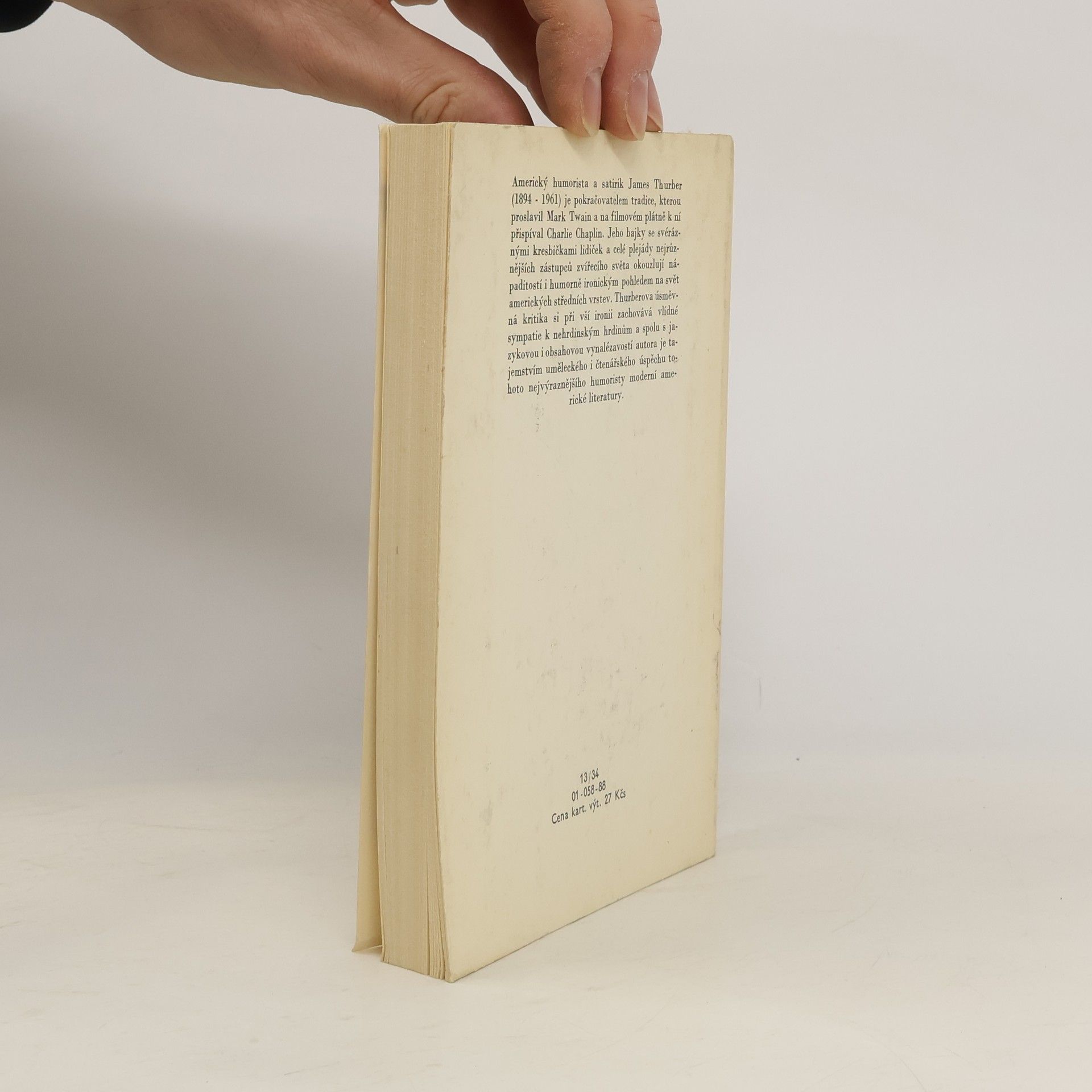 Americký humorista a satirik James Thurber (1894 — 1961) je pokračovatelem tradice, kterou proslavil Mark Twain a na filmovém plátně k ní přispíval Charlie Chaplin. Jeho bajky se svéráznými kresbičkami lidiček a celé plejády nejrůznějších zástupců zvířecího světa okouzlují nápaditostíi humorně ironickým pohledem na svět amerických středních vrstev. Thurberova úsměvná kritika si při vší ironii zachovává vlídné sympatie k nehrdinským hrdinům a spolu s jazykovou i obsahovou vynalézavostí autora je tajemstvím uměleckého i čtenářského úspěchu tohoto nejvýraznějšího humoristy moderní americké literatury.
