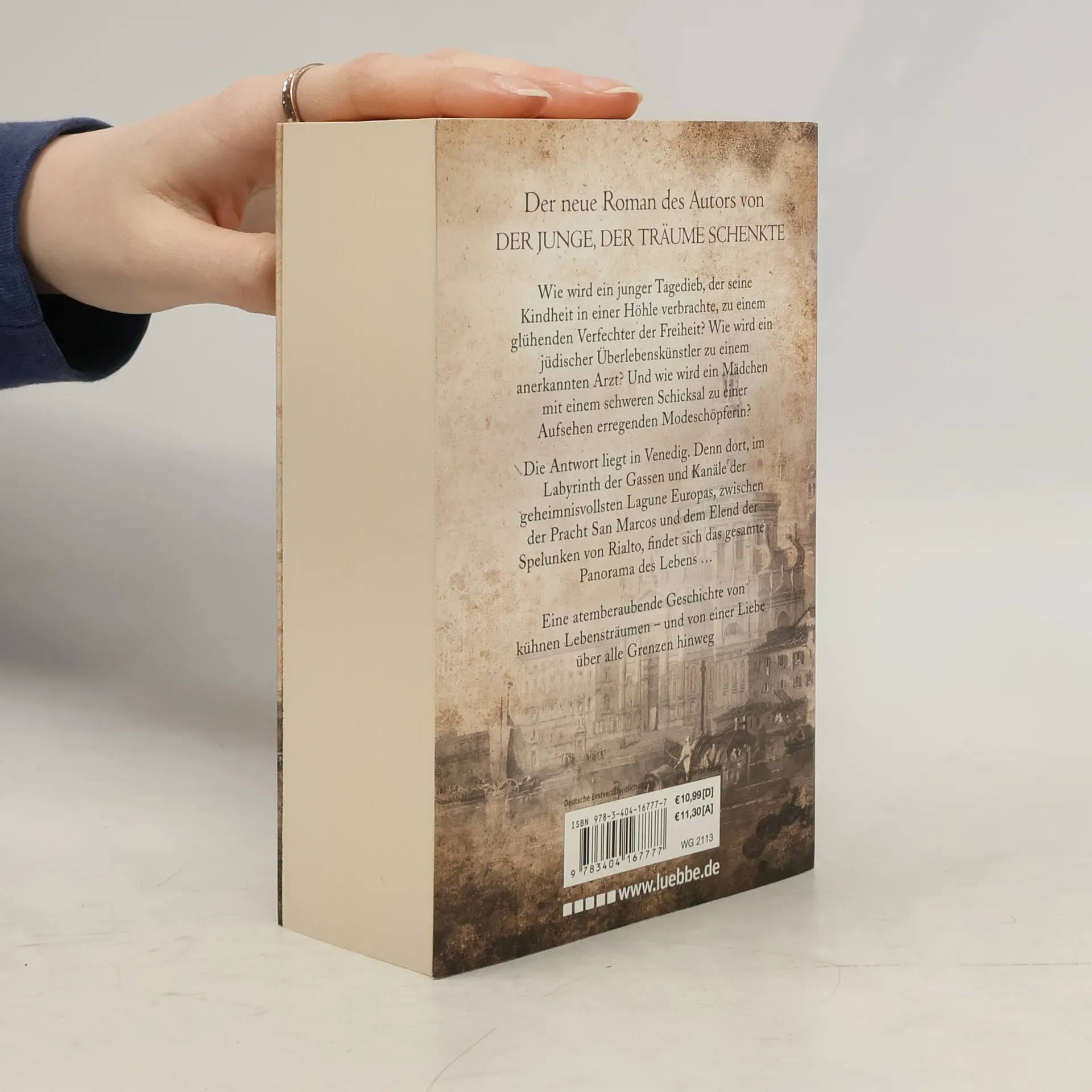 Wie wird ein junger Tagedieb, der seine Kindheit in einer Höhle verbrachte, zu einem glühenden Verfechter der Freiheit? Wie wird ein jüdischer Überlebenskünstler zu einem anerkannten Arzt? Und wie wird ein Mädchen mit einem schweren Schicksal zu einer Aufsehen erregenden Modeschöpferin? Die Antwort liegt in Venedig. Denn dort, im Labyrinth der Gassen und Kanäle der geheimnisvollsten Lagune Europas, zwischen der Pracht San Marcos und dem Elend der Spelunken von Rialto, findet sich das gesamte Panorama des Lebens ... Eine atemberaubende Geschichte von kühnen Lebensträumen - und von einer Liebe über alle Grenzen hinweg