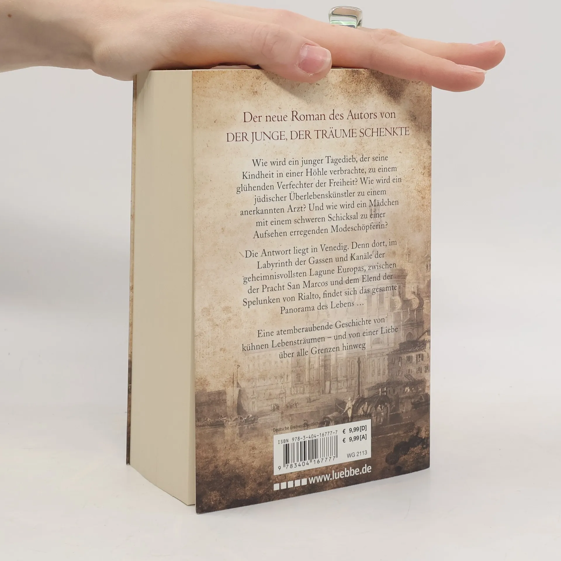 Wie wird ein junger Tagedieb, der seine Kindheit in einer Höhle verbrachte, zu einem glühenden Verfechter der Freiheit? Wie wird ein jüdischer Überlebenskünstler zu einem anerkannten Arzt? Und wie wird ein Mädchen mit einem schweren Schicksal zu einer Aufsehen erregenden Modeschöpferin? Die Antwort liegt in Venedig. Denn dort, im Labyrinth der Gassen und Kanäle der geheimnisvollsten Lagune Europas, zwischen der Pracht San Marcos und dem Elend der Spelunken von Rialto, findet sich das gesamte Panorama des Lebens ... Eine atemberaubende Geschichte von kühnen Lebensträumen - und von einer Liebe über alle Grenzen hinweg