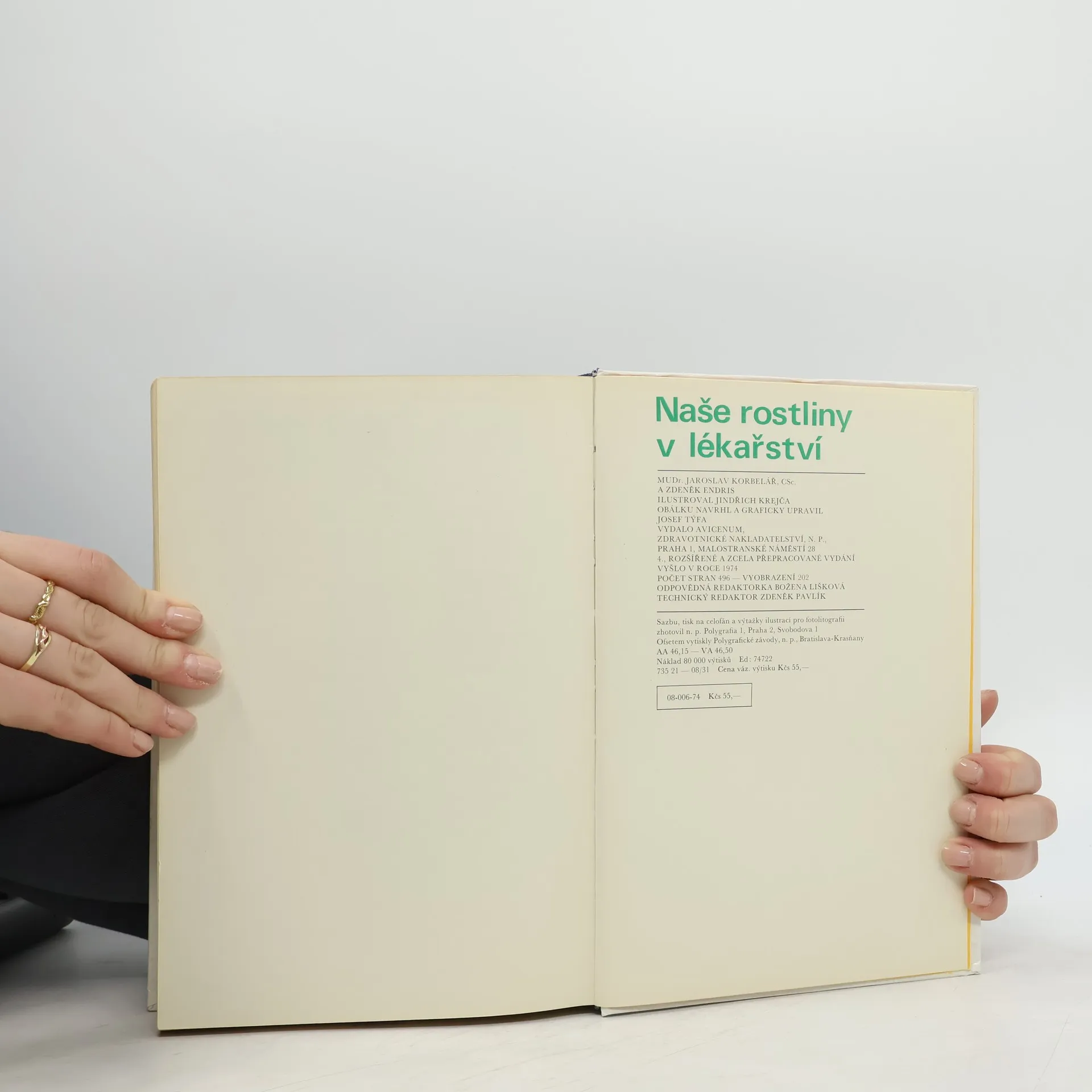 Kniha obsahuje 202 vyobrazení, vždy na jedné straně popis rostliny, výskyt užívaná část, sběr a úprava, účinné látky a působení, užití a na protější straně velice kvalitní kresba. Jedna z nejlepších publikací u nás vydaných. 08-006-74