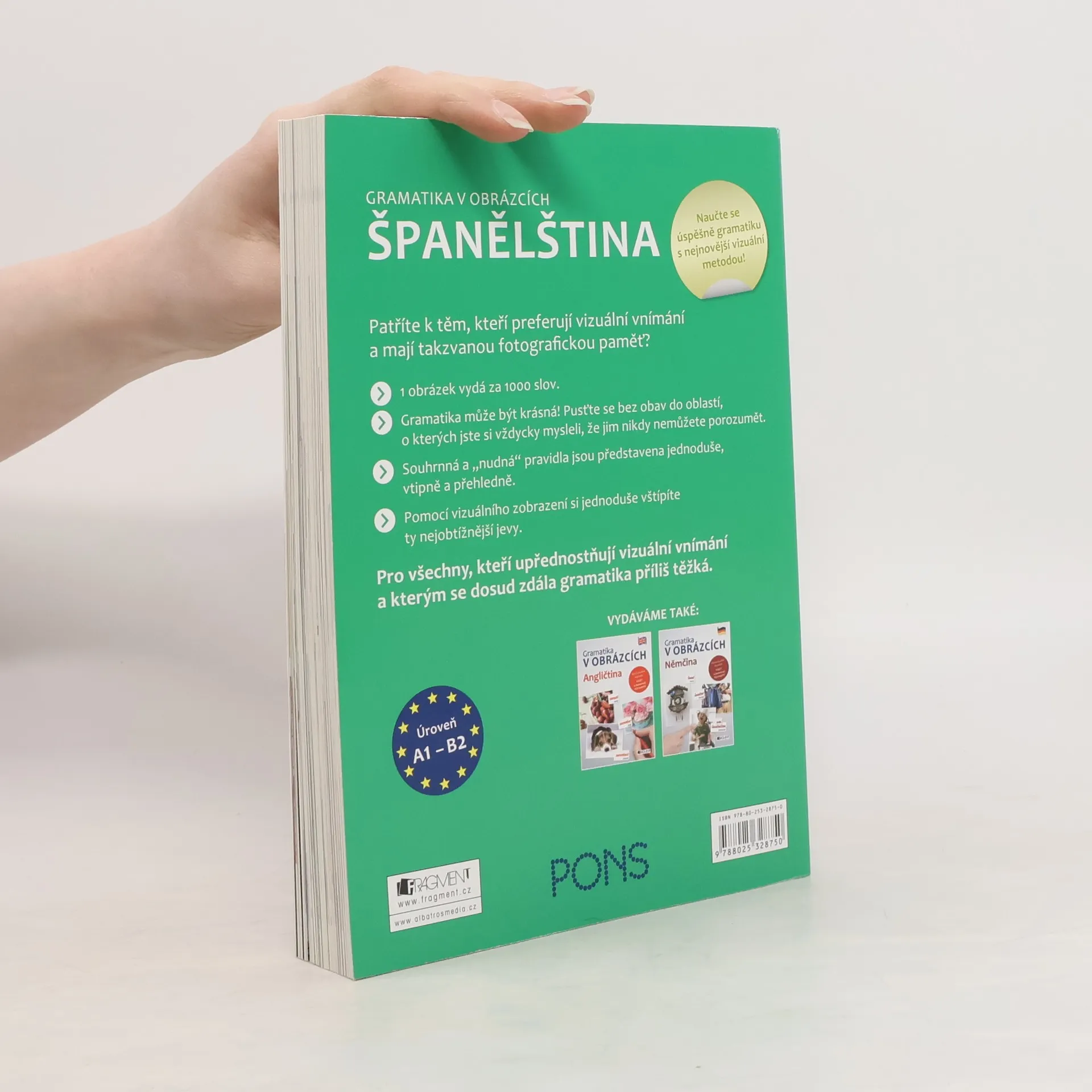 Patříte k těm, kteří preferují vizuální vnímání a mají takzvanou fotografickou paměť? Pro vás a všechny ostatní, které už nebaví staré nezáživné metody a chtějí se učit moderně a efektivně, je tato unikátní učebnice gramatiky. Výklad gramatických jevů je postaven na vtipně a rafinovaně vybraných příkladech, které doplňuje velké množství obrázků. Vše je podáno jednoduše, přehledně a srozumitelně. Snadno tak pochopíte i ty nejzáludnější gramatické jevy. Konečně učebnice, díky níž gramatiku pochopíte!