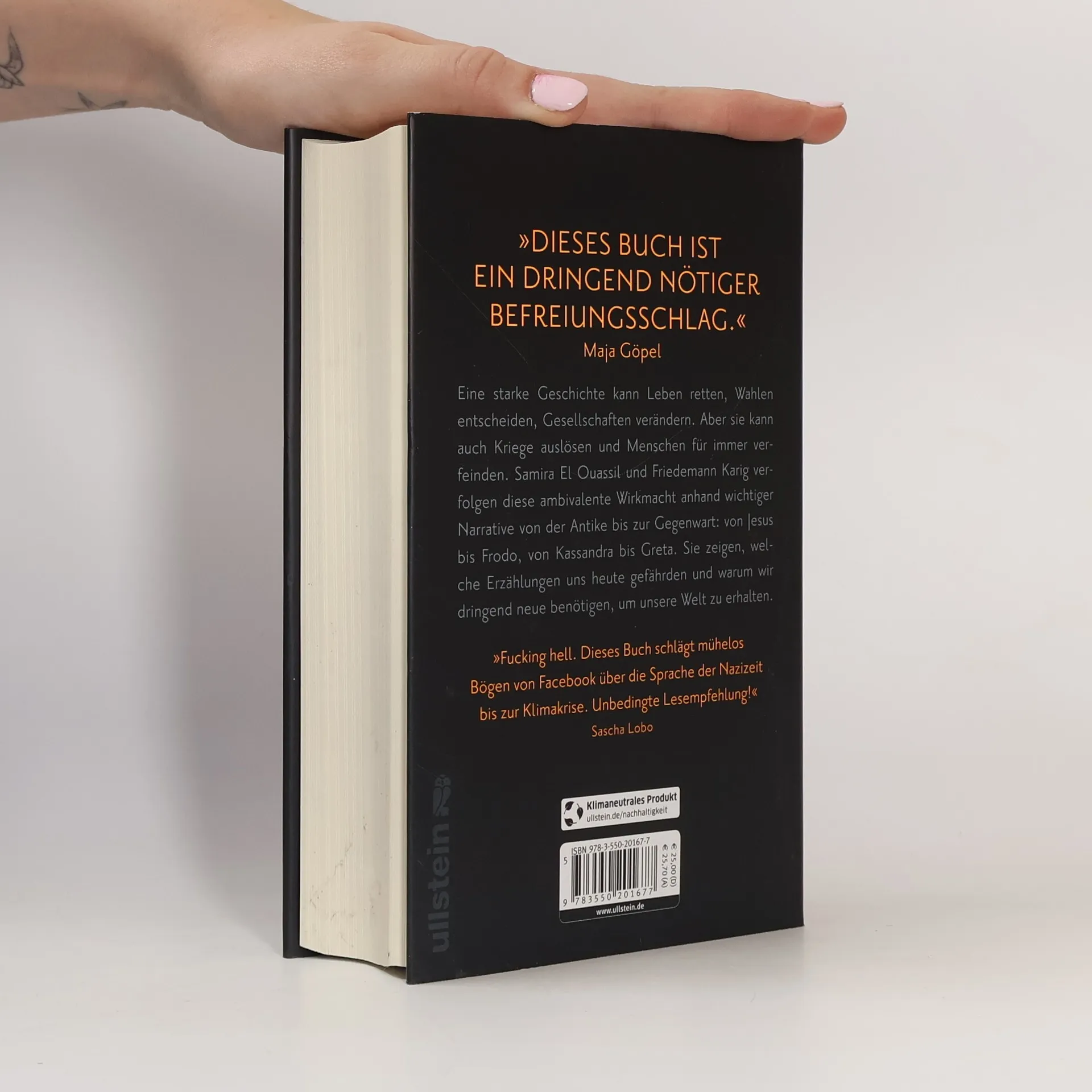 Eine starke Geschichte kann die Welt retten – oder sie zerstören. Sie kann Wahlen entscheiden, Menschenleben retten, aber auch Kriege auslösen und Ungerechtigkeit zementieren. Samira El Ouassil und Friedemann Karig verfolgen diese ambivalente Wirkungsmacht anhand wichtiger Narrative von der Antike bis zur Gegenwart. Und sie zeigen, welche Erzählungen uns heute gefährden und warum wir neue benötigen. Wie gelingt es, den Klimawandel so zu erzählen, dass er zum Handeln drängt? Aus welchen Überlegenheitsmythen entstehen Rassismus und Antisemitismus? Mit welchen Storys manipulierte Trump seine Anhänger, und weshalb verfangen die Lügen der Querdenker und Verschwörungsideologen? Was erzählen wir seit jeher über uns selbst ‒ als Deutsche, als Europäer, als Humanist*innen, über unsere Republik? Gibt es Alternativen dazu? Wie könnte eine wirkungsmächtige neuen Erzählung der Aufklärung aussehen?Geschichten sind ein maßgeblicher Teil unserer Sozialisation. Sie durchdringen Politik, Medien und Kultur, lehren uns, unterhalten uns, verführen uns, beeinflussen unsere Wirklichkeitswahrnehmung - vom griechischen Drama bis zur Netflix-Serie.