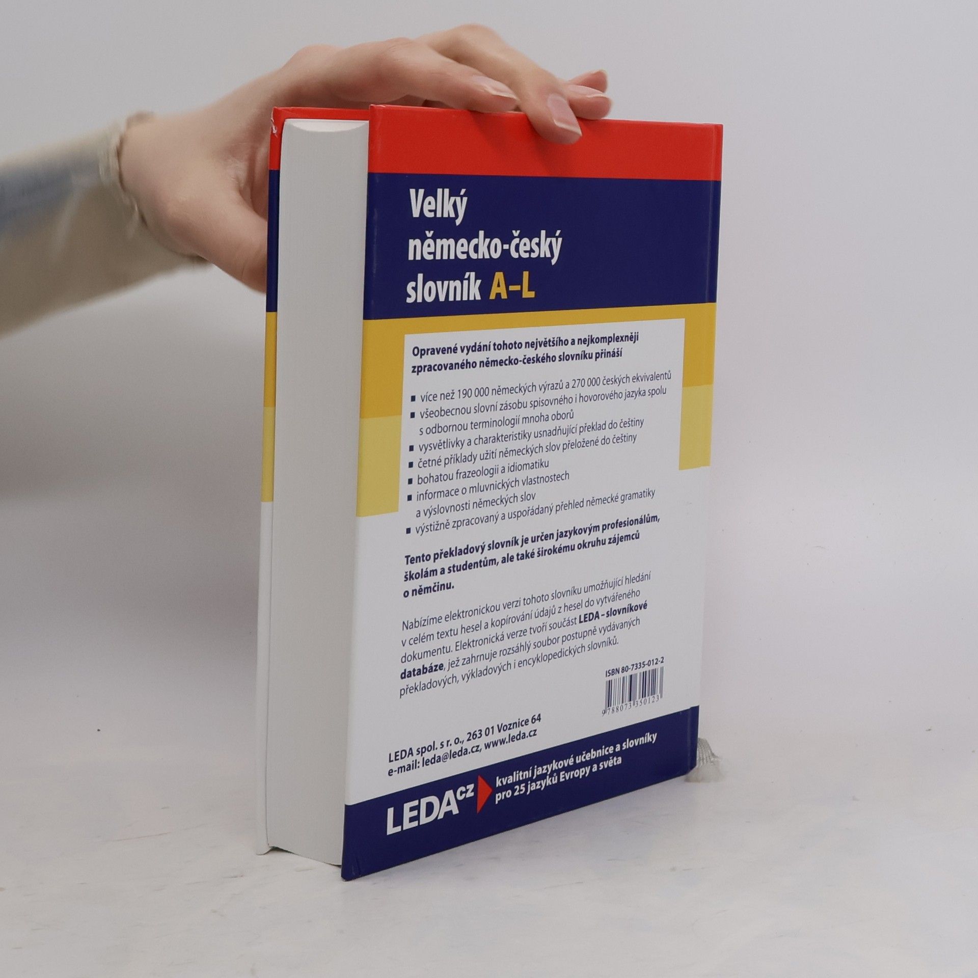 První vydání (SPN, 1964) vyšlo pod názvem Německo-český slovník. Nové, opravené vydání našeho největšího německo-českého slovníku vzniklého v minulém století. V komplexně zpracovaných heslech přináší všeobecnou slovní zásobu jazyka (i v jeho hovorových a expresivních významech)spolu s odbornou a vědeckou terminologií mnoha oborů. Všechny příklady použití jsou uváděny s českým překladem, bohatě jsou zastoupena ustálená slovní spojení včetně idiomatických výrazů; hesla jsou v dostatečné míře vybavena gramatickým a výslovnostním aparátem. Slovník je vybaven přehledem německé gramatiky a je určen překladatelům, studentům pokročilejších úrovní a všem zájemcům o němčinu. (7., oprav. vydání, v nakl. Leda vydání 1.) Slovník je z technických důvodů rozdělen do dvou svazků - sv. 1 (A-L), sv. 2 (M-Z)