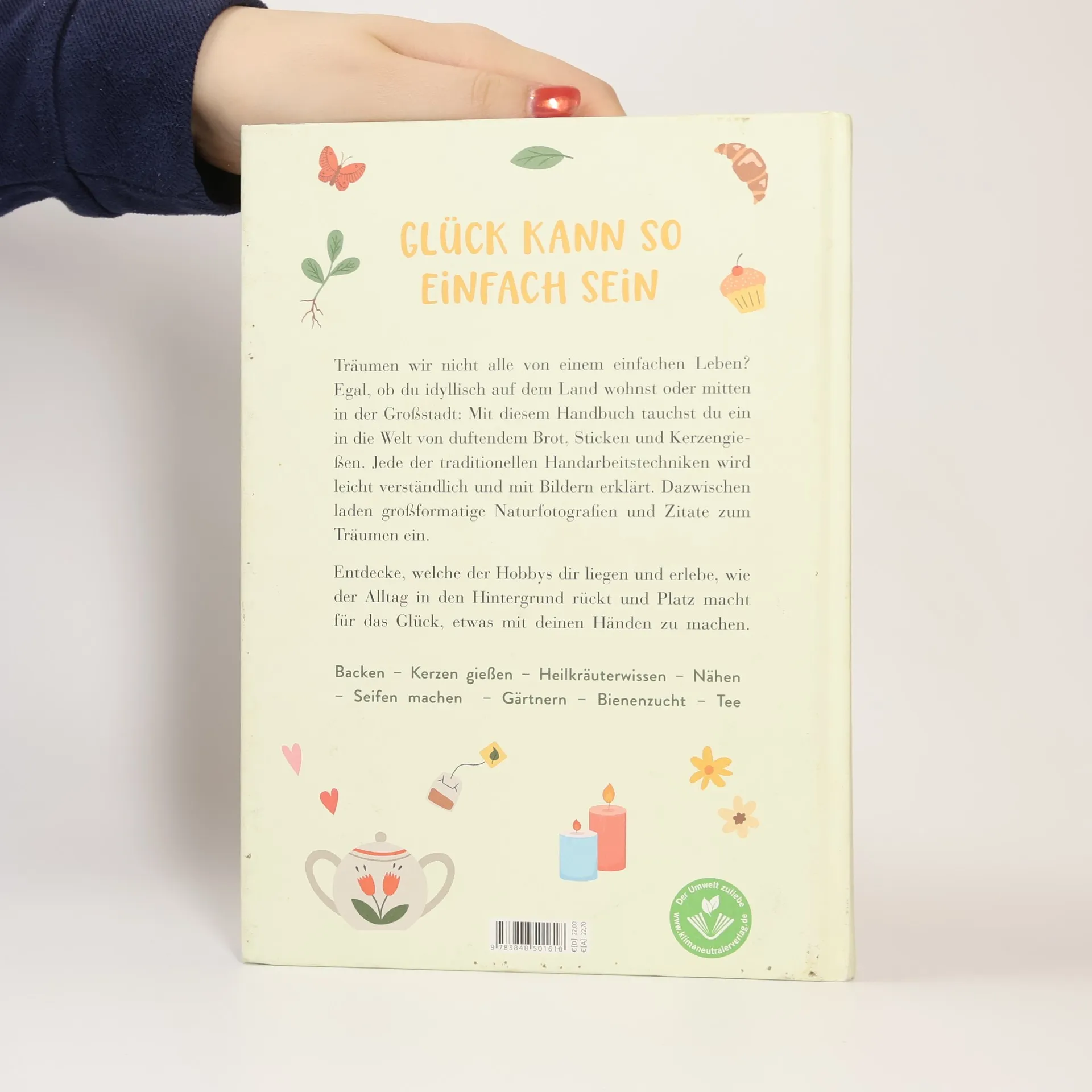Wunderschönes Cottagecore-Buch rund um Landleben und Nachhaltigkeit Dieses DIY-Buch lädt dazu ein, altes Wissen, bewährte Traditionen und die Geschenke der Natur wiederzuentdecken: vom Rezept für die perfekte Tasse Tee über Heilkräuter fürs Immunsystem und einfache DIY-Anleitungen zum Sticken, Nähen, Backen, Gärtnern, Kerzen gießen oder Seifen machen bis zur Bienenzucht. Die informativen Texte enthalten hilfreiche Illustrationen und werden begleitet von wunderschönen Natur-Fotografien, die Lust machen, das Leben im Einklang mit der Natur zu genießen und dabei die eigene Kreativität zu entdecken. Cottagecore verbindet romantisches Landleben mit Nachhaltigkeit Tolles Geschenk für alle, die vom einfachen Leben träumen, nachhaltig leben und gerne kreativ sind Mit einfachen Anleitungen zum Sticken, Nähen, Backen, Seifen machen, Kerzen-Gießen, Gärtnern und zur Bienenzucht Edle Ausstattung mit stimmungsvollen Fotografien Cottagecore Buch mit 176 Seiten