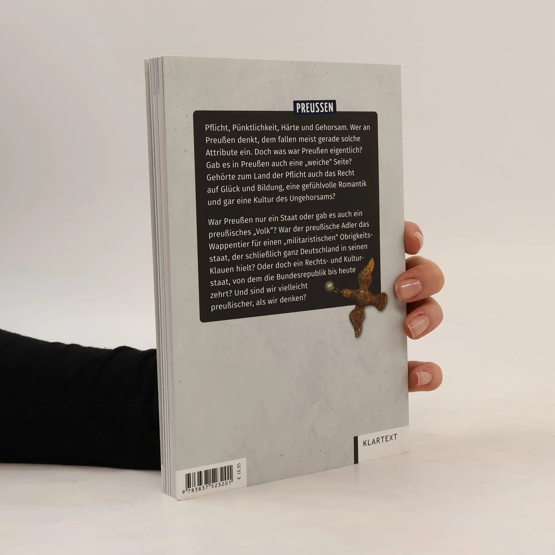 Pflicht, Pünktlichkeit, Härte und Gehorsam. Wer an Preußen denkt, dem fallen meist gerade solche Attribute ein. Doch was war Preußen eigentlich? Gab es in Preußen auch eine „weiche“ Seite? Gehörte zum Land der Pflicht auch das Recht auf Glück und Bildung, eine gefühlvolle Romantik und gar eine Kultur des Ungehorsams? War Preußen nur ein Staat oder gab es auch ein preußisches „Volk“? War der preußische Adler das Wappentier für einen „militaristischen“ Obrigkeitsstaat, der schließlich ganz Deutschland in seinen Klauen hielt? Oder doch ein Rechts- und Kulturstaat, von dem die Bundesrepublik bis heute zehrt? Und sind wir vielleicht preußischer als wir denken?