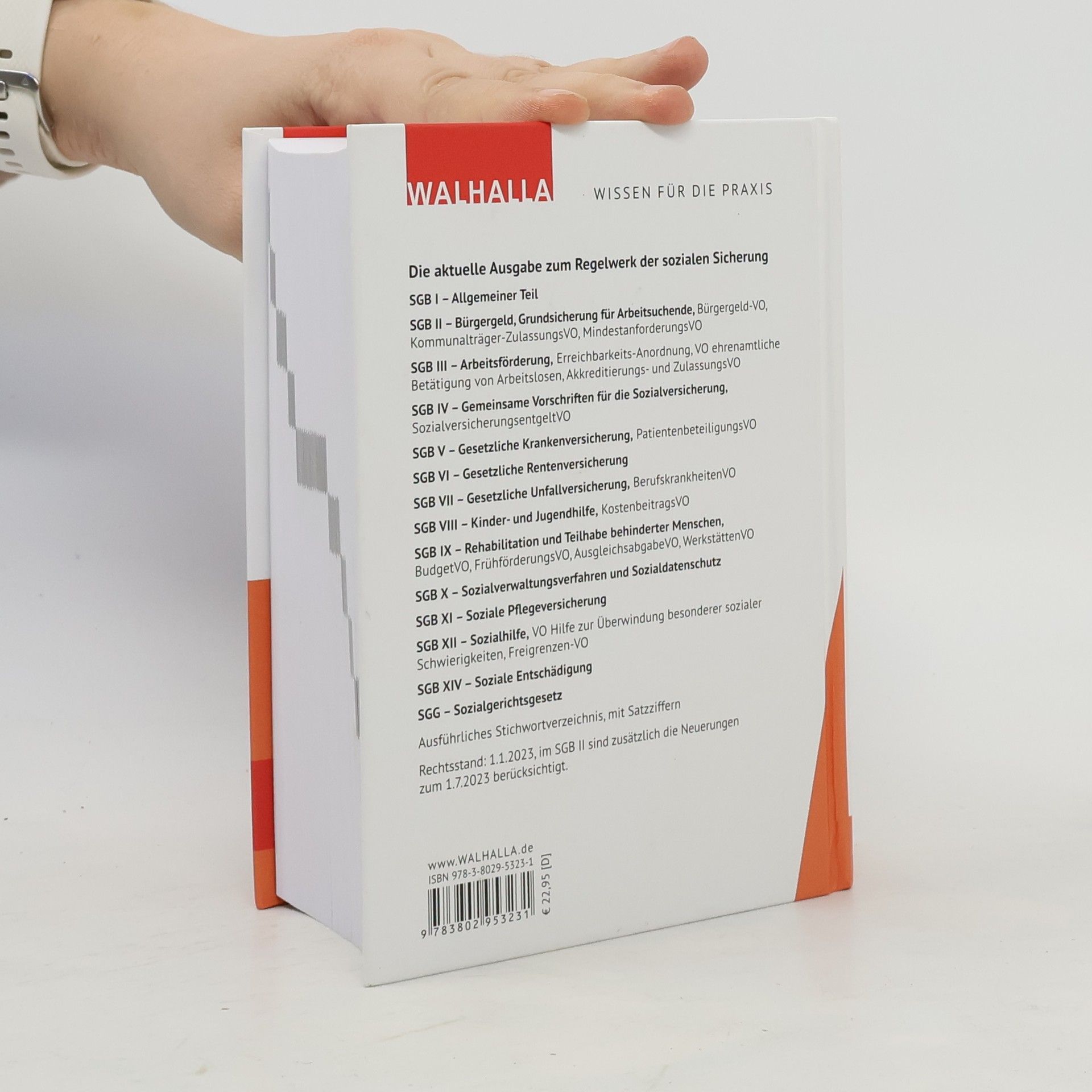 Die aktuelle Ausgabe zum Regelwerk der sozialen Sicherung SGB I – Allgemeiner Teil SGB II – Bürgergeld, Grundsicherung für Arbeitsuchende: Bürgergeld-VO, Kommunalträger-ZulassungsVO, MindestanforderungsVO, SGB III – Arbeitsförderung: Erreichbarkeits-Anordnung, VO ehrenamtliche Betätigung von Arbeitslosen, Akkreditierungs- und ZulassungsVO SGB IV – Gemeinsame Vorschriften für die Sozialversicherung: SozialversicherungsentgeltVO SGB V – Gesetzliche Krankenversicherung: PatientenbeteiligungsVO SGB VI – Gesetzliche Rentenversicherung SGB VII – Gesetzliche Unfallversicherung: BerufskrankheitenVO SGB VIII – Kinder- und Jugendhilfe: KostenbeitragsVO SGB IX – Rehabilitation und Teilhabe behinderter Menschen: BudgetVO, FrühförderungsVO, AusgleichsabgabeVO, WerkstättenVO SGB X – Sozialverwaltungsverfahren und Sozialdatenschutz SGB XI – Soziale Pflegeversicherung SGB XII – Sozialhilfe: EingliederungshilfeVO, VO Hilfe zur Überwindung besonderer sozialer Schwierigkeiten, Freigrenzen-VO SGB XIV – Soziale Entschädigung SGG – Sozialgerichtsgesetz Ausführliches Stichwortverzeichnis, mit Satzziffern Rechtsstand: 1.1.2023, im SGB II sind zusätzlich die Neuerungen zum 1.7.2023 berücksichtigt.