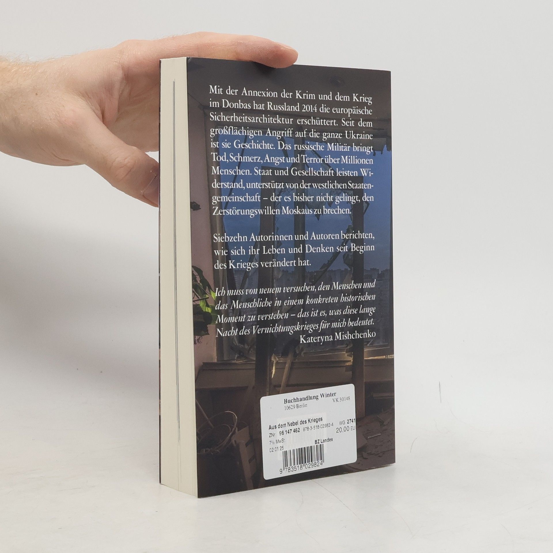 Seit dem Angriff Russlands auf die Ukraine sind Tausende Menschen umgekommen, Hunderttausende haben Terror und Zerstörung erlitten, Millionen Bürger sind geflohen. Dennoch: unterstützt vom Westen, halten Staat und Gesellschaft stand. Aus dem Nebel des Krieges entsteht eine neue, ungewisse Zukunft. Die Autorinnen und Autoren des Bandes – Schriftsteller, Wissenschaftlerinnen und Aktivisten, Künstlerinnen und Journalisten – halten die Gleichzeitigkeit fest: die Ruinierung des Lebens und seiner Orte; die zivile und militärische Selbstbehauptung; den Willen, eine neue, friedliche Heimat zu schaffen. Sie beschreiben und analysieren die Situation der traumatisierten Menschen im Krieg – ihre tiefgreifende Veränderung, ihre Fähigkeit, sich in sehr unklaren Zeiten dennoch wiederzufinden.