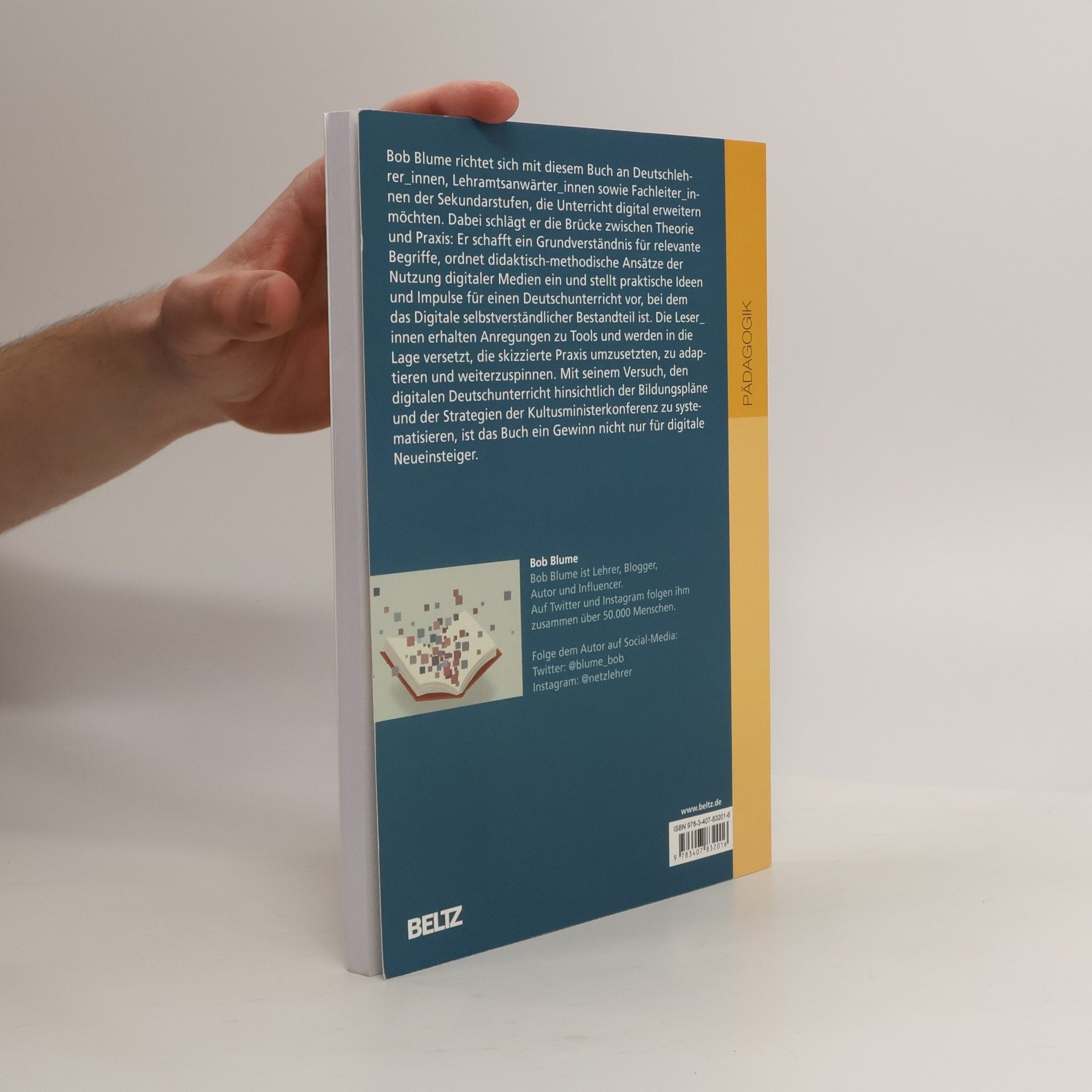 Bob Blume richtet sich mit diesem Buch an Deutschlehrer_innen, Lehramtsanwärter_innen sowie Fachleiter_innen der Sekundarstufen, die Unterricht digital erweitern möchten. Dabei schlägt er die Brücke zwischen Theorie und Praxis: Er schafft ein Grundverständnis für relevante Begriffe, ordnet didaktisch-methodische Ansätze der Nutzung digitaler Medien ein und stellt praktische Ideen und Impulse für einen Deutschunterricht vor, bei dem das Digitale selbstverständlicher Bestandteil ist. Die Leser_innen erhalten Anregungen zu Tools und werden in die Lage versetzt, die skizzierte Praxis umzusetzen, zu adaptieren und weiterzuspinnen. Mit seinem Versuch, den digitalen Deutschunterricht hinsichtlich der Bildungspläne und der Strategien der Kultusministerkonferenz zu systematisieren, ist das Buch ein Gewinn nicht nur für digitale Neueinsteiger. Aus dem Inhalt - Digitalität und Deutschunterricht – Begriffe, das 4k-Modell des Lernens, »Mehrwert« digitaler Medien - Deutschunterricht digital: Rahmen – Kompetenzorientierung und Digitalität, Funktion digitaler Medien im Deutschunterricht, mögliche Schritte, 10 Thesen zum digital erweiterten Deutschunterricht - Deutschunterricht digital: didaktische Konzepte - Praktische Umsetzungsmöglichkeiten – Literaturunterricht, Sachtextanalyse, Texterörterung und -analyse, Sprachbetrachtung, Schreibtraining, neue (digitale) Textformen