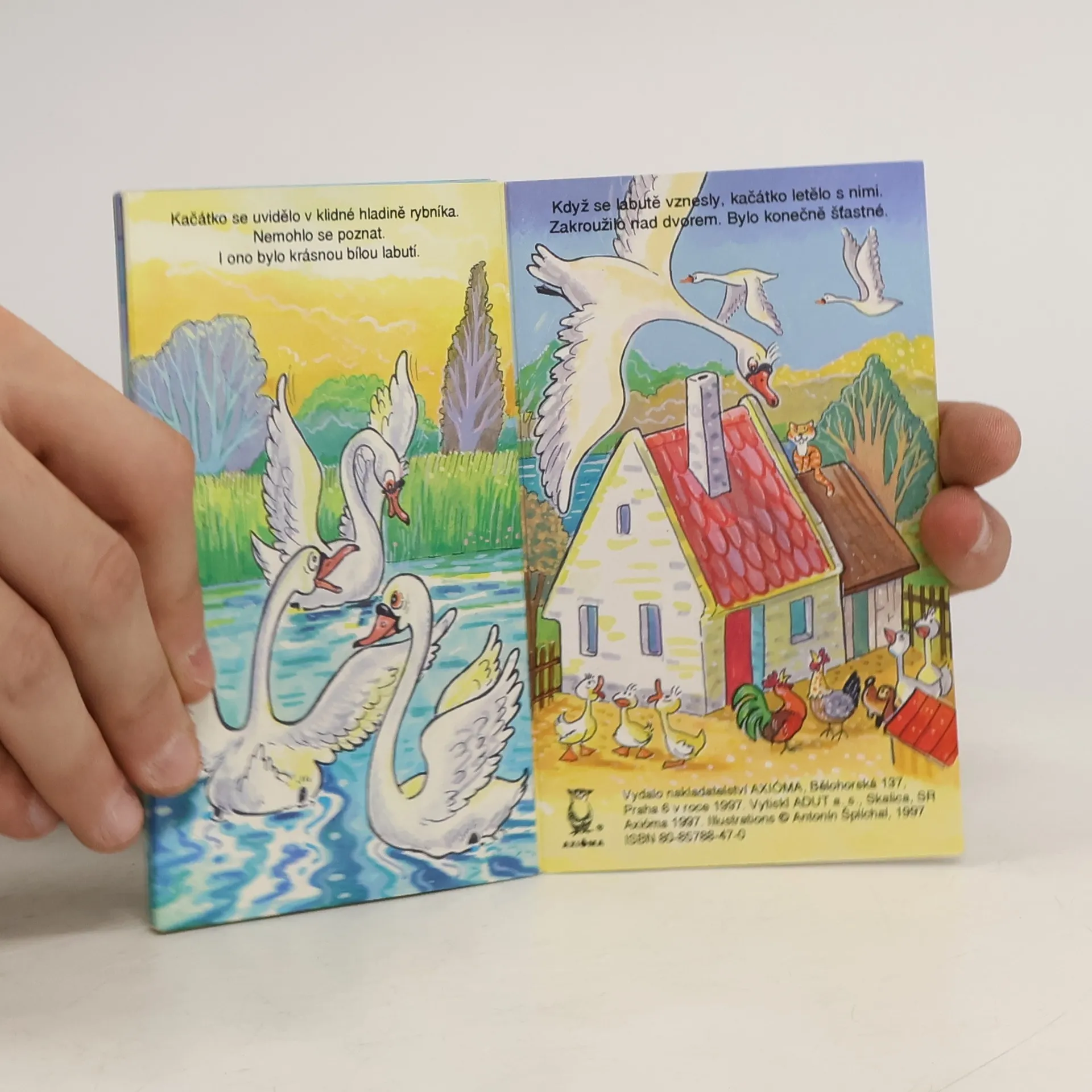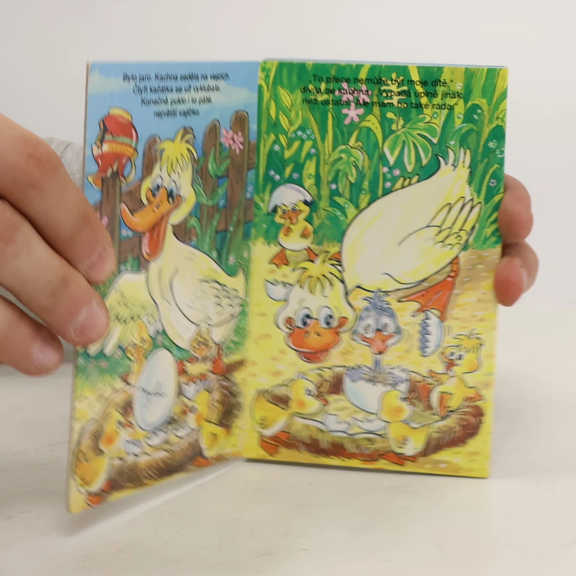 Rozkládací leporelo, plné obrázků na motivy známé pohádky Ošklivé kačátko.