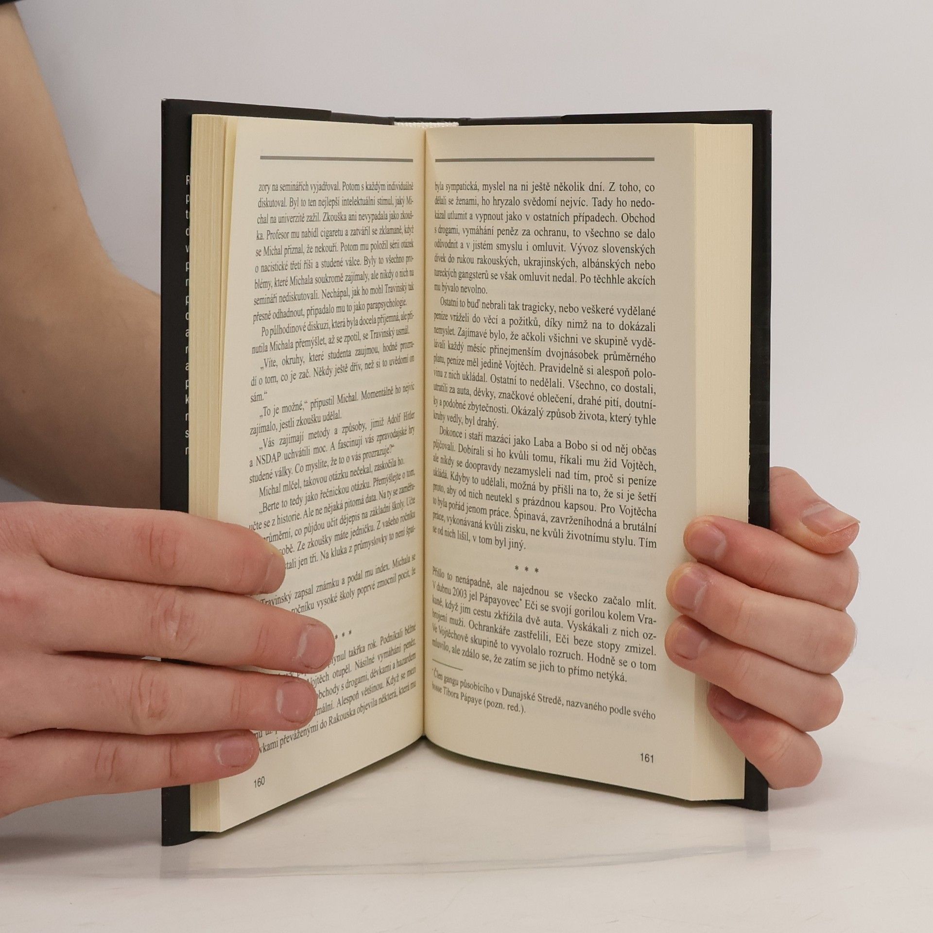 Románový debut Jozefa Kariky situovaný do prostředí současného Slovenska přináší drsný příběh příslušníků generace dospívající na sklonku 20. století v době vzniku nové, svobodné společnosti, nových příležitostí, jak uspět, ale i jak ztroskotat. S šokující otevřeností popisuje mafiánské praktiky od vybírání výpalného přes natáčení pornografie až po korupci rozežírající státní i regionální struktury. Bez patosu zachycuje vzestupy a pády tří přátel, jejich naděje i zklamání, chvíle, kdy zažijí pocity totální moci, či naopak absolutní bezmoci.