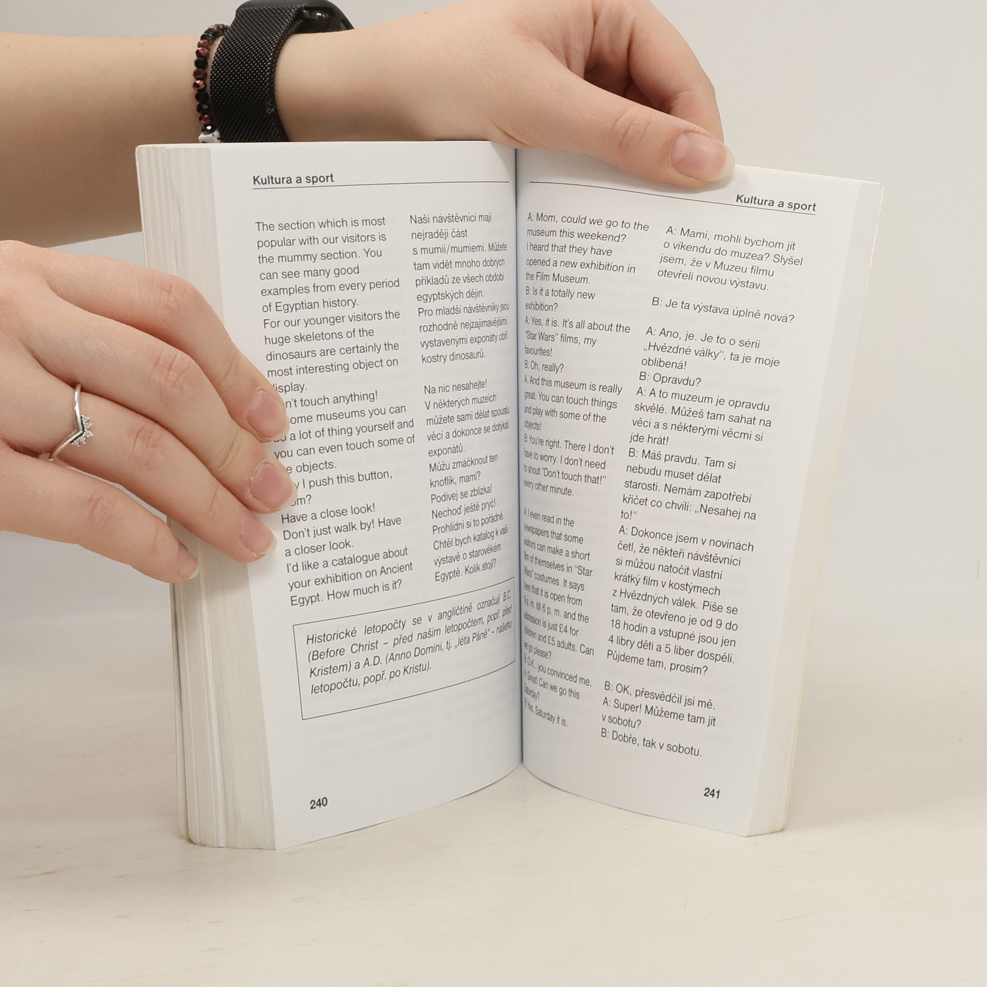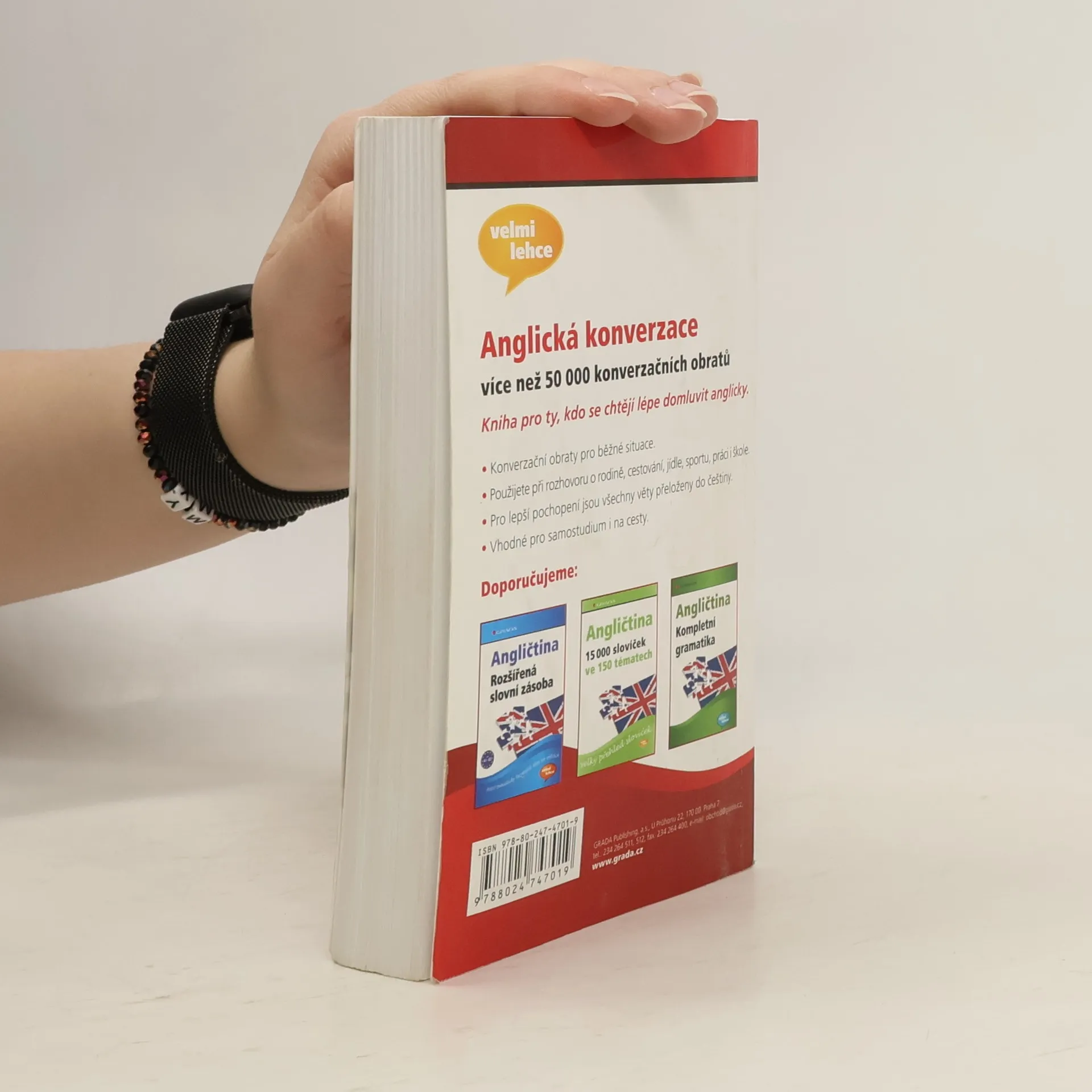Užitečná příručka pro všechny, kdo mají obavy z konverzace v angličtině. Na 324 stranách probereme všechny běžné situace, kdy byste se museli vyjadřovat, ptát a odpovídat v angličtině - komunikační fráze; slovní spojení, která je třeba znát při cestování, při návštěvě restaurace a kavárny, na poště, v bance, fráze o penězích; jak mluvit při návštěvě lékaře, zubaře a nemocnice; komunikace po telefonu, jak napsat osobní dopis, jak vyjádřit nejistotu, oblibu, politování, zklamání a očekávání; jak hovořit o počasí, škole, zaměstnání, kultuře, sportu, politice, bydlení a nakupování. Všechny anglické obraty a ukázkové věty jsou přeloženy do češtiny. Text je doplněn inforámečky o hovorových tvarech a reáliích. Vhodné pro samouky.