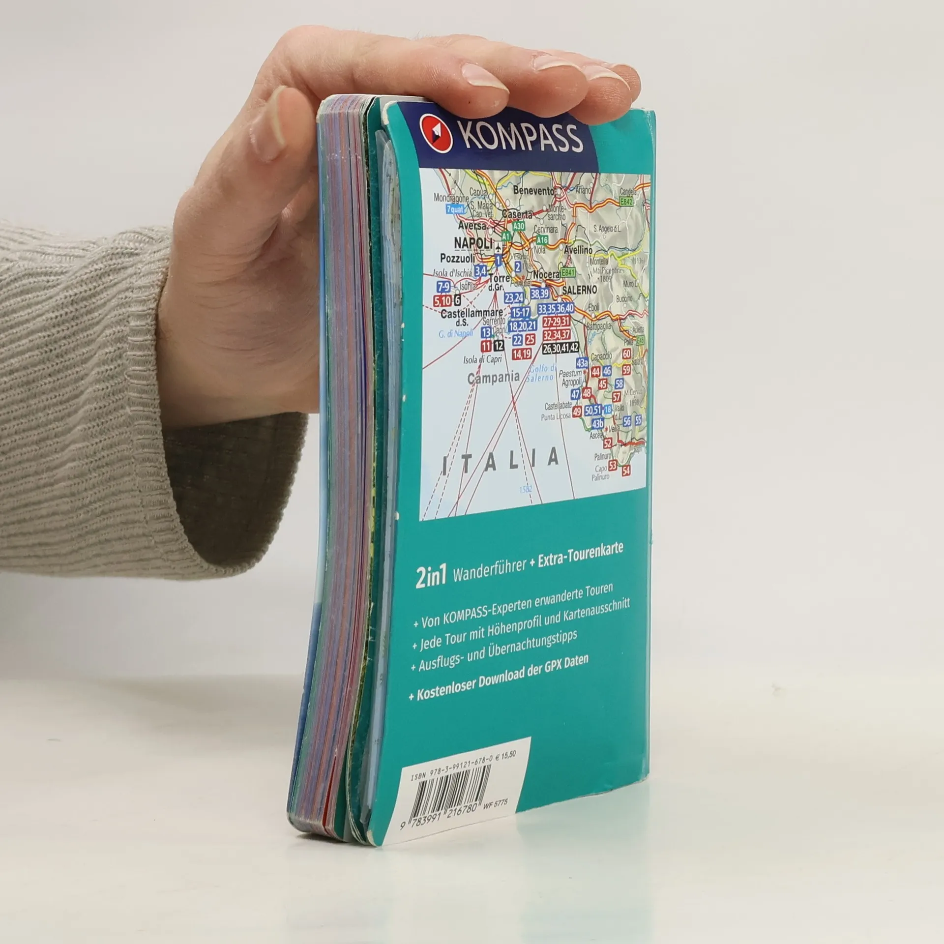 Die Küstenregion um den Golf von Neapel verführt mit mediterranem Flair, antiken Ruinen und malerischen Dörfern. Von Ischia über Capri bis zur Amalfi-Küste bietet diese Region spektakuläre Ausblicke auf das azurblaue Meer, steile Klippen und blühende Zitronenhaine. Der Wanderführer enthält von Kompass-Experten erarbeitete Touren, die jede mit Höhenprofil und Kartenausschnitt versehen sind. Zudem gibt es Ausflugs- und Übernachtungstipps sowie eine Extra-Tourenkarte, die bei der Tourenauswahl hilft. Die enthaltenen Kartenausschnitte ermöglichen örtliche Orientierung, während Fakten und Berichte Geschichten über die Region erzählen. Für unterwegs ist die herausnehmbare Extra-Tourenkarte mit eingezeichneten Tourenverläufen praktisch. Der Wanderführer hebt die besten Highlights hervor: sportliche Gipfel, familienfreundliche Routen, genussvolle Momente und kulturelle Schätze. Zudem stehen GPS-Daten im GPX-Format zum Download bereit, um die Wanderungen direkt auf dem Smartphone oder GPS-Gerät zu navigieren. Entdecke atemberaubende Pfade und erlebe unvergessliche Abenteuer zu Fuß – hol dir jetzt deinen Wanderführer und lass dich von Kompass leiten!