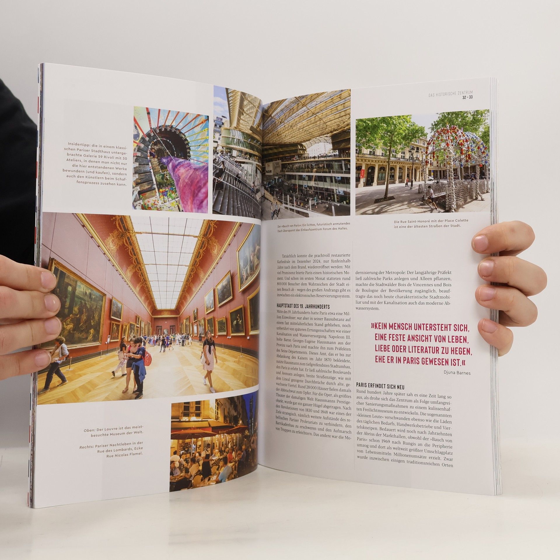 Wer einmal nach Paris reist, kehrt immer wieder. Die Stadt der Lichter begeistert mit monumentalen Bauwerken, lebendiger Kultur und Savoir vivre. Neben Eiffelturm, Louvre und Sacré-Coeur gibt es viel zu entdecken: Künstlercafés in Saint-Germain, weltberühmte Warenhäuser und aufregende junge Kunst im Nordosten. Der DuMont Bildatlas führt zu beliebten Highlights und unbekannten Ecken! Die besten Ideen für Ihre Reiseplanung umfassen große Kunst, Genuss, grüne Wunder und Atmosphäre pur. Entdecken Sie unsere Favoriten für genussvolles Shopping, die kühnsten Blicke auf Paris und schwungvolle Live-Musik. Umweltfreundliche Entdeckungstouren mit Rad, Bahn und auf dem Wasser sind ebenfalls möglich. Themen wie der grüne Wandel, die Olympischen Spiele und der Erfolg von Streetart werden behandelt. Für unvergessliche Erinnerungen gibt es Tipps für Souvenirs und Erlebnisse. Detaillierte Straßenkarten und ein City-Plan bieten beste Orientierung. Der DuMont Bildatlas kombiniert nützlichen Reiseführer mit spannendem Magazin. Autorin Gabriele Kalmbach führt durch berühmte Viertel und auf den Spuren der Bohème nach Montmartre und ins Marais. Wer eine Pause vom quirligen Stadtleben sucht, findet Entspannung im Schlossgarten von Versailles oder im Bois de Bologne. Großformatige Bilder von Georg Knoll lassen Sie bereits vor der Reise in die legendäre Stadt eintauchen. Die schönsten Sehenswürdigkeiten und Ausflugsziele sind am Ende jedes Kapitel