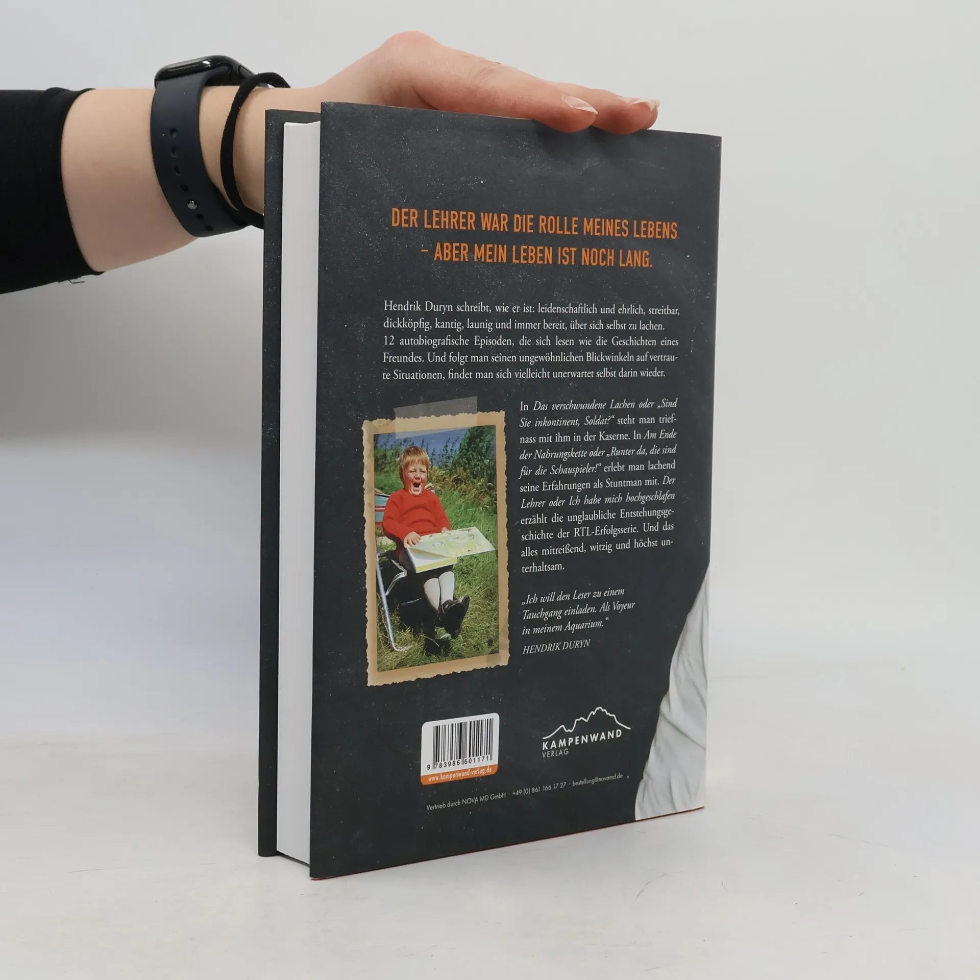 Der Lehrer war die Rolle meines Lebens – aber mein Leben ist noch lang. Hendrik Duryn schreibt, wie er ist: leidenschaftlich und ehrlich, streitbar, dickköpfig, kantig, launig und immer bereit, über sich selbst zu lachen. 12 autobiografische Episoden, die sich lesen wie die Geschichten eines Freundes. Und folgt man seinen ungewöhnlichen Blickwinkeln auf vertraute Situationen, findet man sich vielleicht unerwartet selbst darin wieder. In Das verschwundene Lachen oder: Sind sie Inkontinent, Soldat?, steht man triefnass mit ihm in der Kaserne. In Am Ende der Nahrungskette oder: Runter da, die sind für die Schauspieler! erlebt man lachend seine Erfahrungen als Stuntman mit. Der Lehrer oder: Ich habe mich hochgeschlafen erzählt die unglaubliche Entstehungsgeschichte der RTL-Erfolgsserie. Und das alles mitreißend, witzig und höchst unterhaltsam. Altbewährtes wiederzukäuen, weil es Erfolg verspricht? Gegebenes hinzunehmen, weil es sich gut verkauft? Nee. Als Schauspieler und Drehbuchschreiber bin ich gefordert, Visionen zu entwickeln. Perspektivwechsel. Die befreien von Vorurteilen, von Angst, von der ewigen Wiederholung derselben Fehler. Der Lehrer war eine Vision. Ist jahrelang gescheitert und wir haben lustvoll immer weiter gemacht, bis er endlich auf Sendung war.