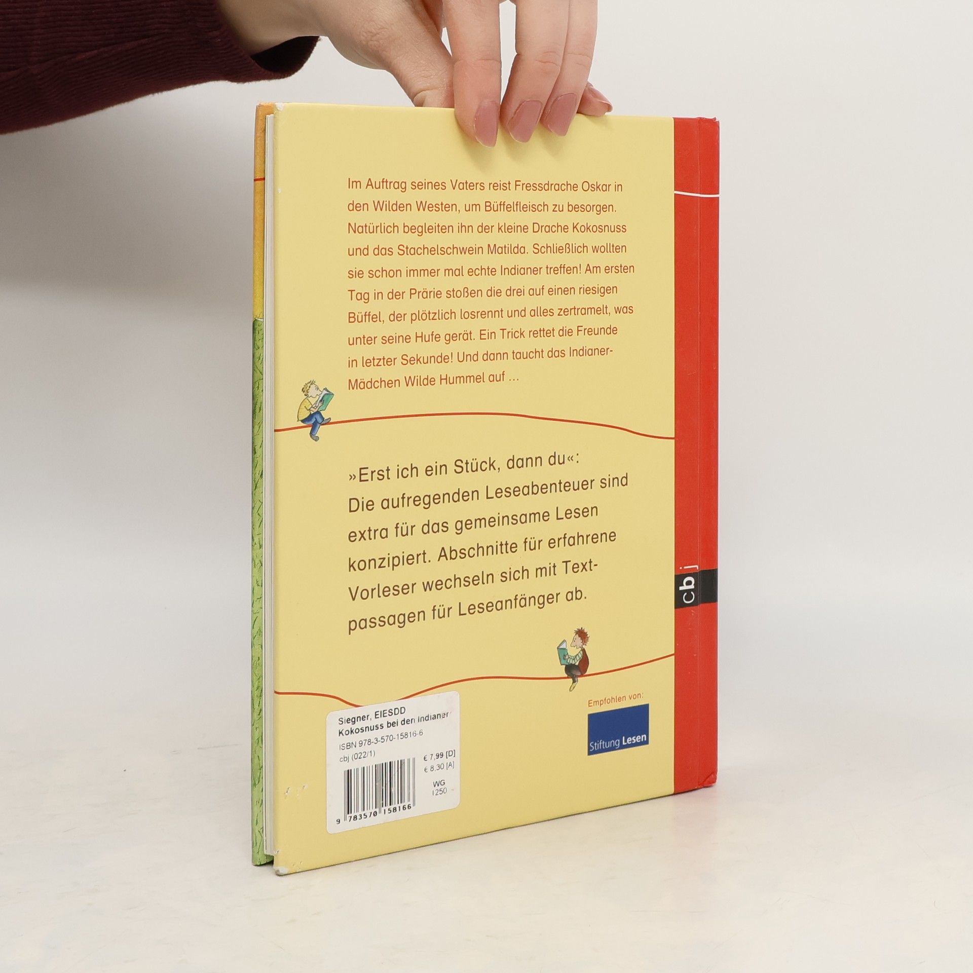 Gemeinsam lesen mit dem kleinen Drachen Kokosnuss! Im Auftrag seines Vaters reist Fressdrache Oskar in den Wilden Westen, um Büffelfleisch zu besorgen. Natürlich kommen Kokosnuss und Matilda mit! Schließlich wollten sie schon immer mal echte Indianer treffen! Bereits am ersten Tag in der Prärie stoßen die drei auf einen riesigen Büffel, der plötzlich losrennt und alles zertrampelt, was unter seine Hufe gerät. Zum Glück ist Indianermädchen »Wilde Hummel« in der Nähe und rettet die drei in letzter Sekunde. Doch das ist nicht das einzige Abenteuer, das die Freunde bestehen müssen.