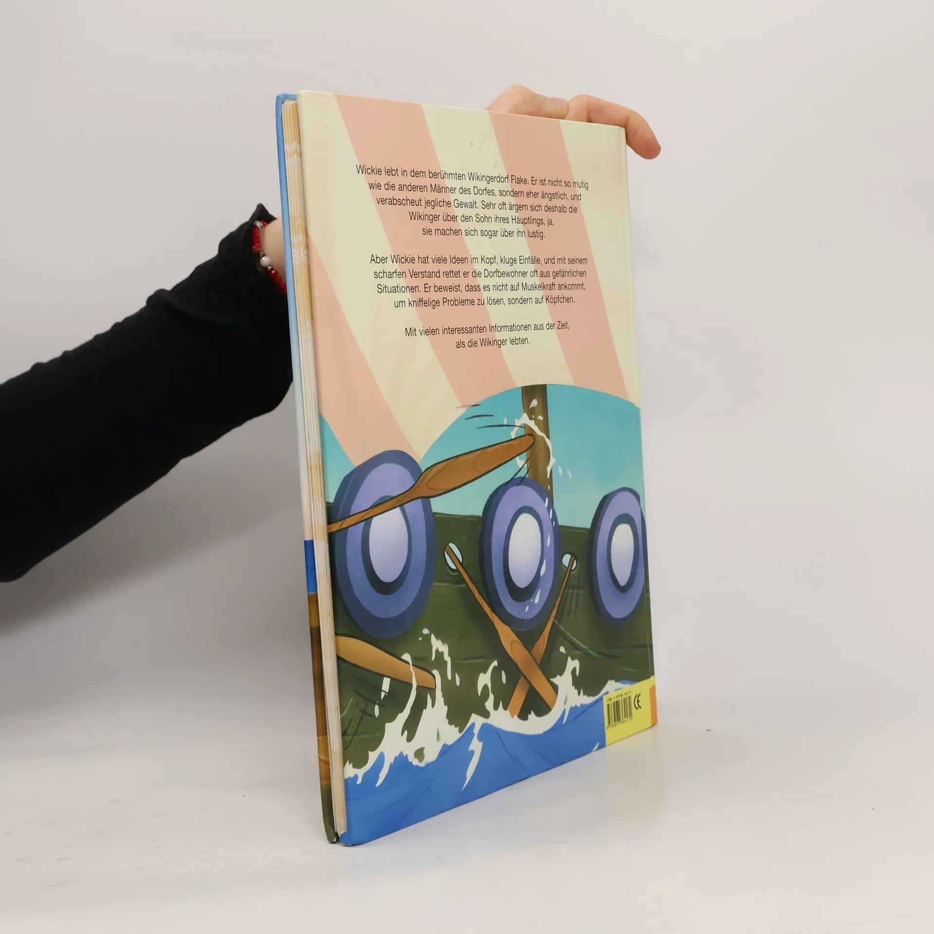 Wickie lebt in dem berühmten Wikingerdorf Flake. Er ikst nicht so mutig wie die anderen Männer des Dorfes, sondern eher ängstlich, und verabscheut jegliche Gewalt. Sehr oft ärgern sich deshalb die Wikinger über den Sohn ihres Häuptlings, ja, sie machen sich sogar über ihn lustig. Aber Wickie hat viele Ideen im Kopf, kluge Einfälle, und mit seinem scharfen Verstand rettet er die Dorfbewohner oft aus gefährlichen Situationen. Er beweist, dass es nicht auf Muskelkraft ankommt, um kniffelige Probleme zu lösen, sondern auf Köpfchen. Mit vielen interessanten Informationen aus der Zeit, als die Wikinger lebten.