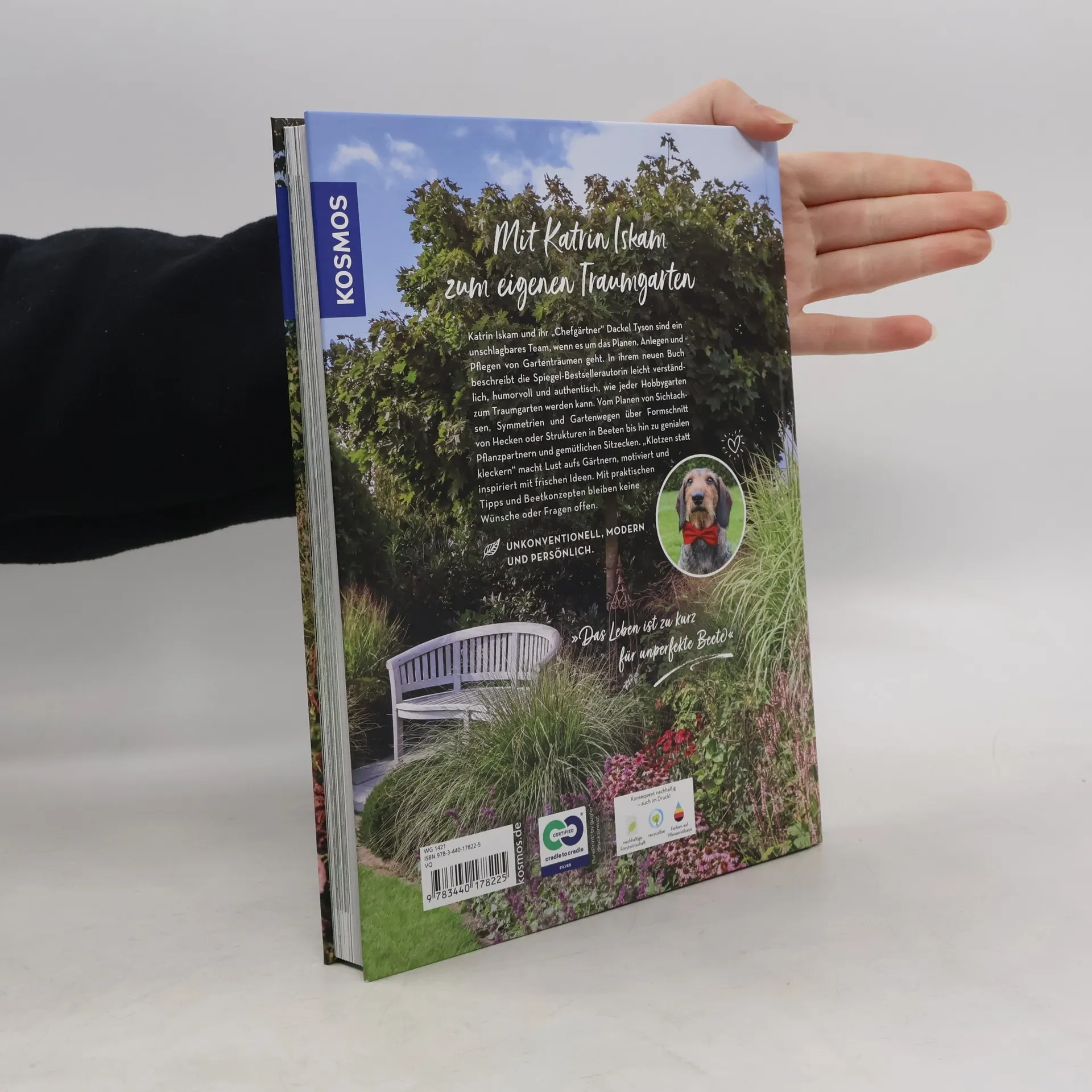 Katrin Iskam und ihr „Chefgärtner“ Dackel Tyson – ein unschlagbares Expertenteam, wenn es um das Planen, Anlegen und Pflegen von Gartenträumen geht. In ihrem neuen Buch beschreibt die Spiegel-Bestsellerautorin leicht verständlich, unverwechselbar humorvoll und authentisch, wie jeder Hobby-Garten zum einzigartigen Gartentraum werden kann. Vom Planen von Sichtachsen, Symmetrien und Gartenwegen über Formschnitt von Hecken und Bäumen oder Strukturen in Beeten bis hin zu Lieblingspflanzen und gemütlichen Sitzecken: „Klotzen statt Kleckern“ macht Lust aufs Gärtnern, motiviert und inspiriert mit frischen Ideen und lässt mit praktischen Tipps, Tricks und Beetkonzepten keine Wünsche oder Fragen offen.