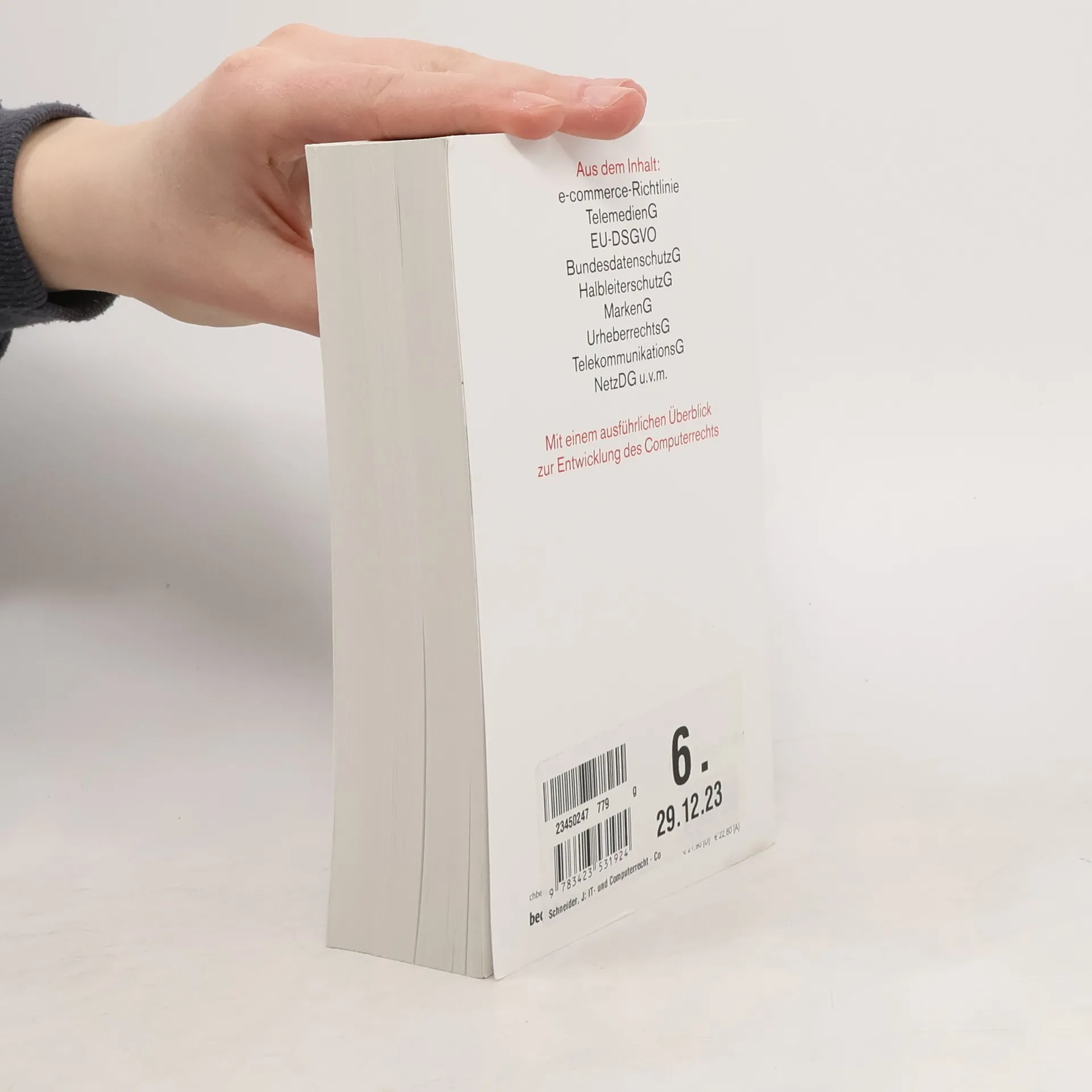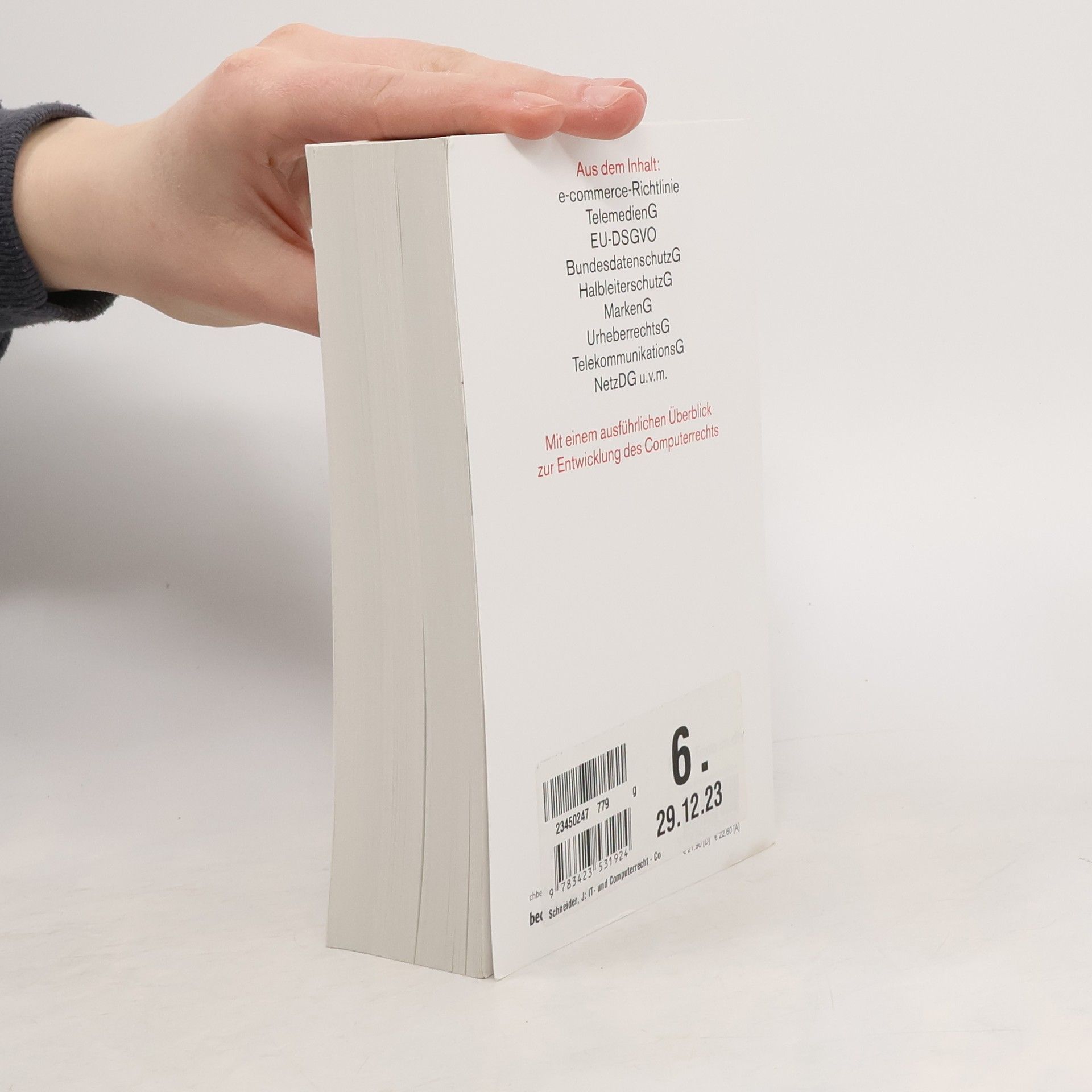 Inhalt Dieser Band enthält alle für die tägliche Praxis wichtigen Bestimmungen: ecommerce-RL, EU-Datenschutz-GrundVO, BundesdatenschutzG, HalbleiterschutzG, MarkenG, UrheberrechtsG, TelekommunikationsG und vieles mehr. Neuauflage Mit der 16. Auflage ist die Ausgabe insgesamt umstrukturiert und ergänzt um einen Bereich IT- und Datensicherheit mit allen dafür notwendigen Gesetzen, Verordnungen und Richtlinien, teilweise in Auszügen. Zielgruppe Alle, die mit IT-Recht zu tun haben