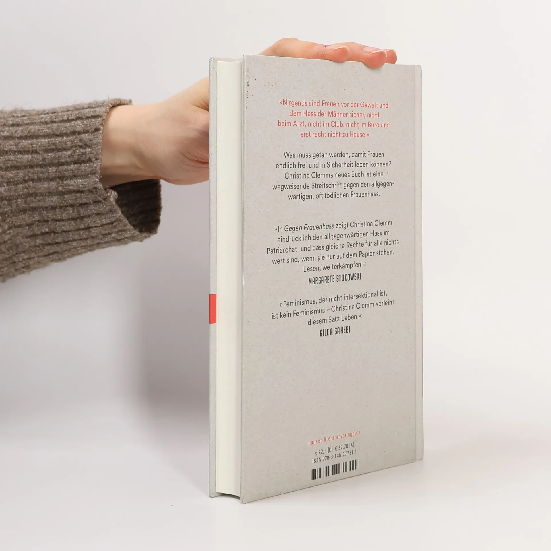 „Alle, wirklich alle Frauen können betroffen sein. Und alle, wirklich alle Männer können Täter sein.“ Die Rechtsanwältin Christina Clemm zeigt, wie allgegenwärtig die Gewalt gegen Frauen ist, und was wir verändern müssen – politisch wie privat. Lisa M. trifft Mirko im Studium. Sie verlieben sich, streiten kaum. Dann wird sie schwanger, sie ziehen zu seiner Mutter, haben bald drei Kinder. Eine Familie wie im Bilderbuch, wäre da nicht seine Wut. Anfangs muss Lisa die Hämatome noch verstecken, mit der Zeit wird er zielsicherer. Sie versucht zu fliehen, doch vergeblich. Christina Clemm ist Strafverteidigerin, sie hat hunderte Opfer geschlechtsspezifischer Gewalt vertreten. Und sie ist wütend – weil in Deutschland jeden dritten Tag eine Frau von ihrem (Ex-)Partner umgebracht wird. Weil Frauen beim Arzt, in der Arbeit und auf offener Straße Gewalt erleben und niemand etwas dagegen tut. Warum nicht? Ist es Unkenntnis, Hilflosigkeit, Desinteresse? Oder liegt dem Ganzen ein tief verwurzelter Frauenhass zugrunde? Christina Clemm führt uns durch die Spirale patriarchaler Gewalt und zeigt, was getan werden muss.